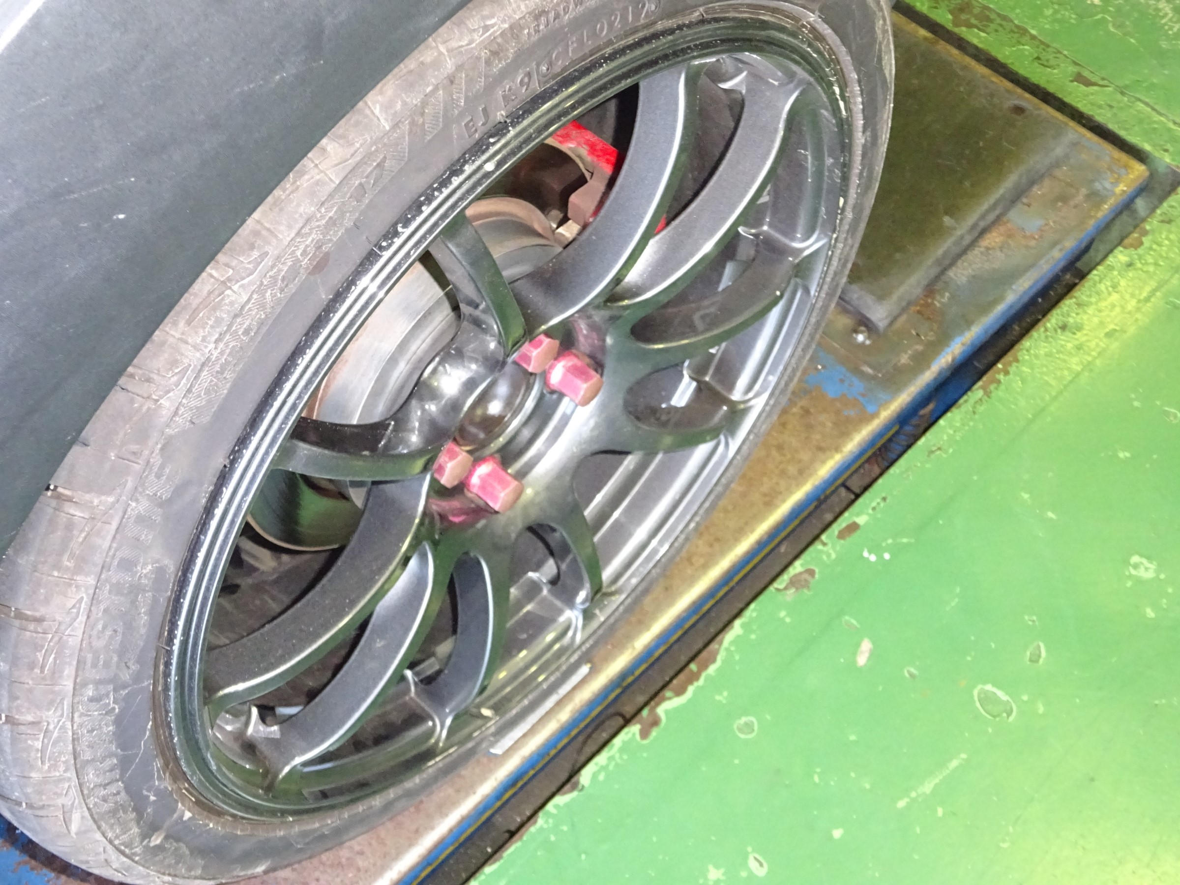 黒のホイールに赤のボルトがオシャレなのですが、年数とともに日焼けによる色あせが目立ってました。