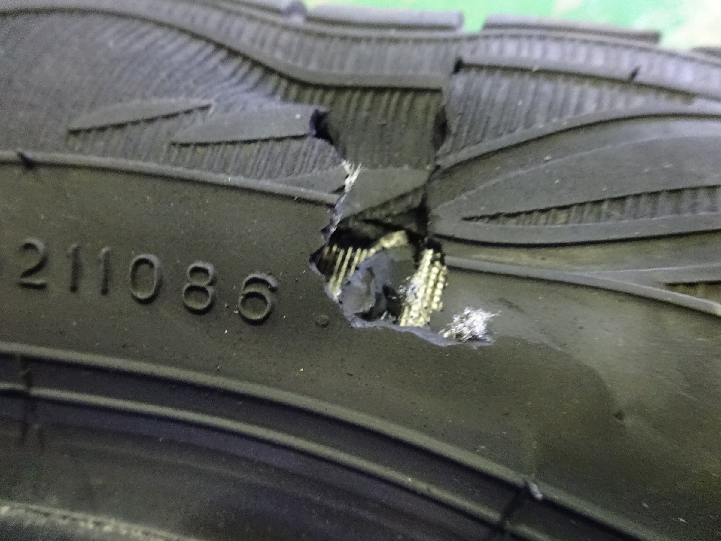 今回も御客様からは「パンク修理お願いします」と言われましたが、残念ながらそんな次元の話ではなく、来店時から既にタイヤからパタパタ音がしてました。