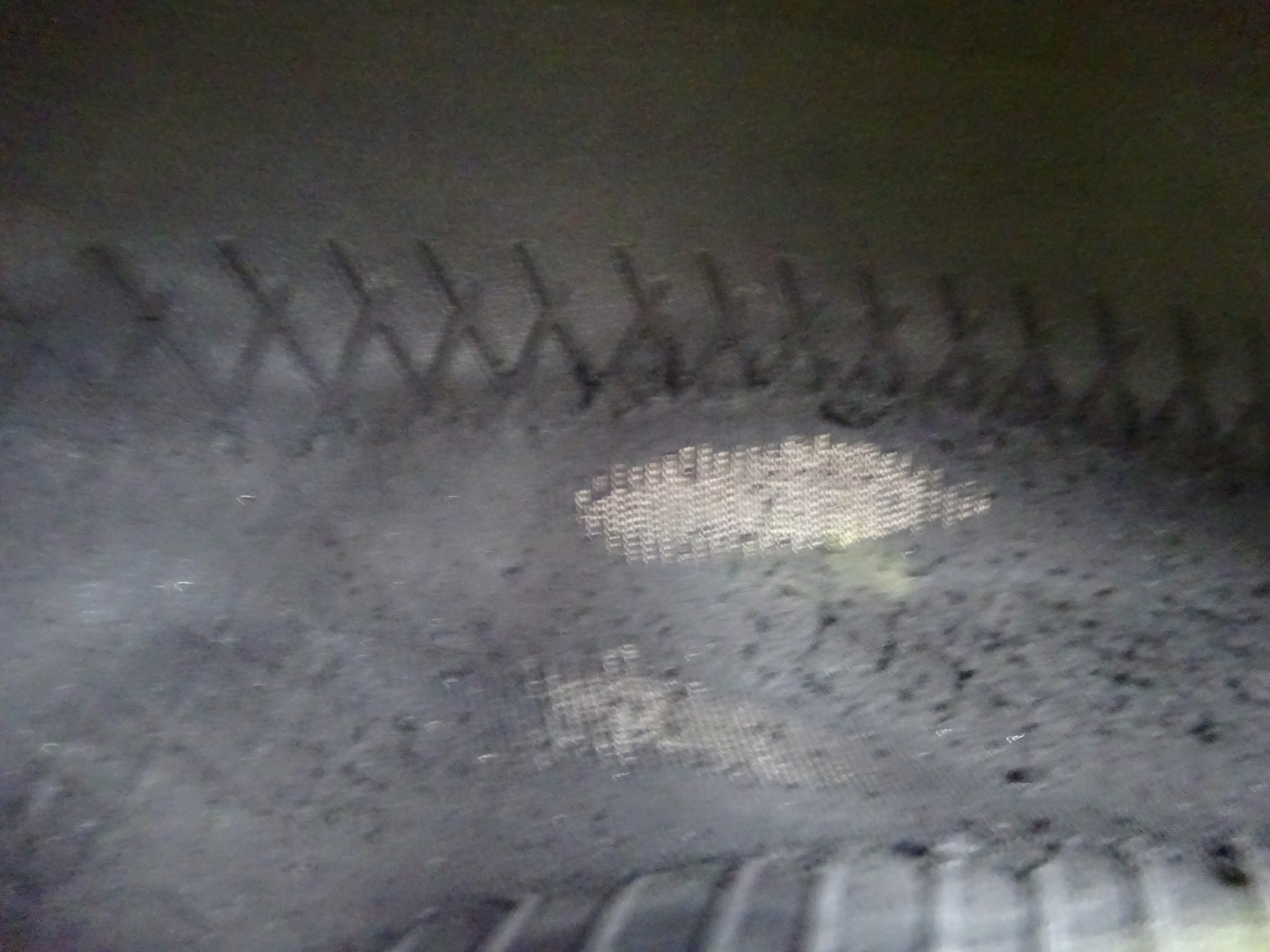 内面はゴムが擦り切れて、外から見えてる繊維が内面からも見えてます。