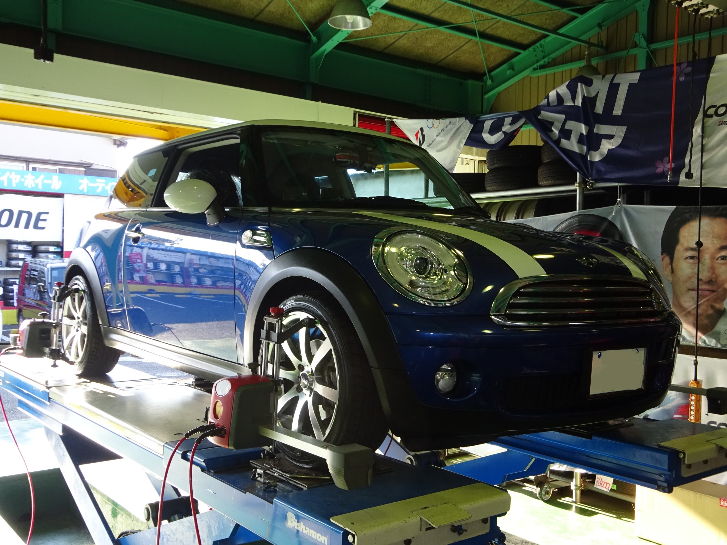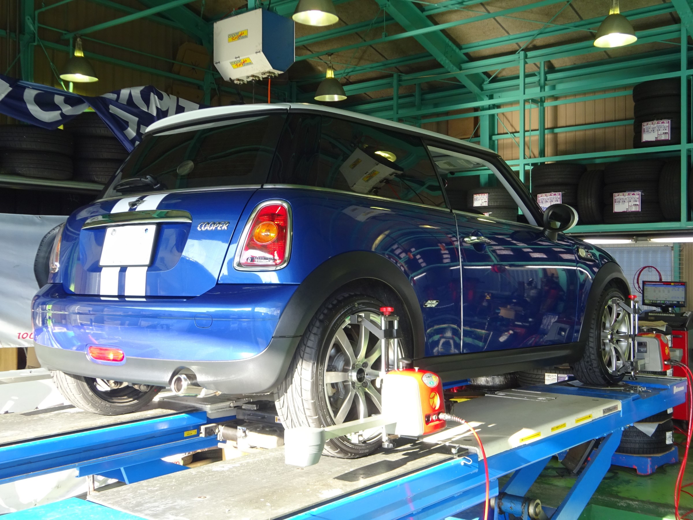 まずは走行フィールの改善を目的に、コクピット得意の4輪アライメント調整を実施。。。