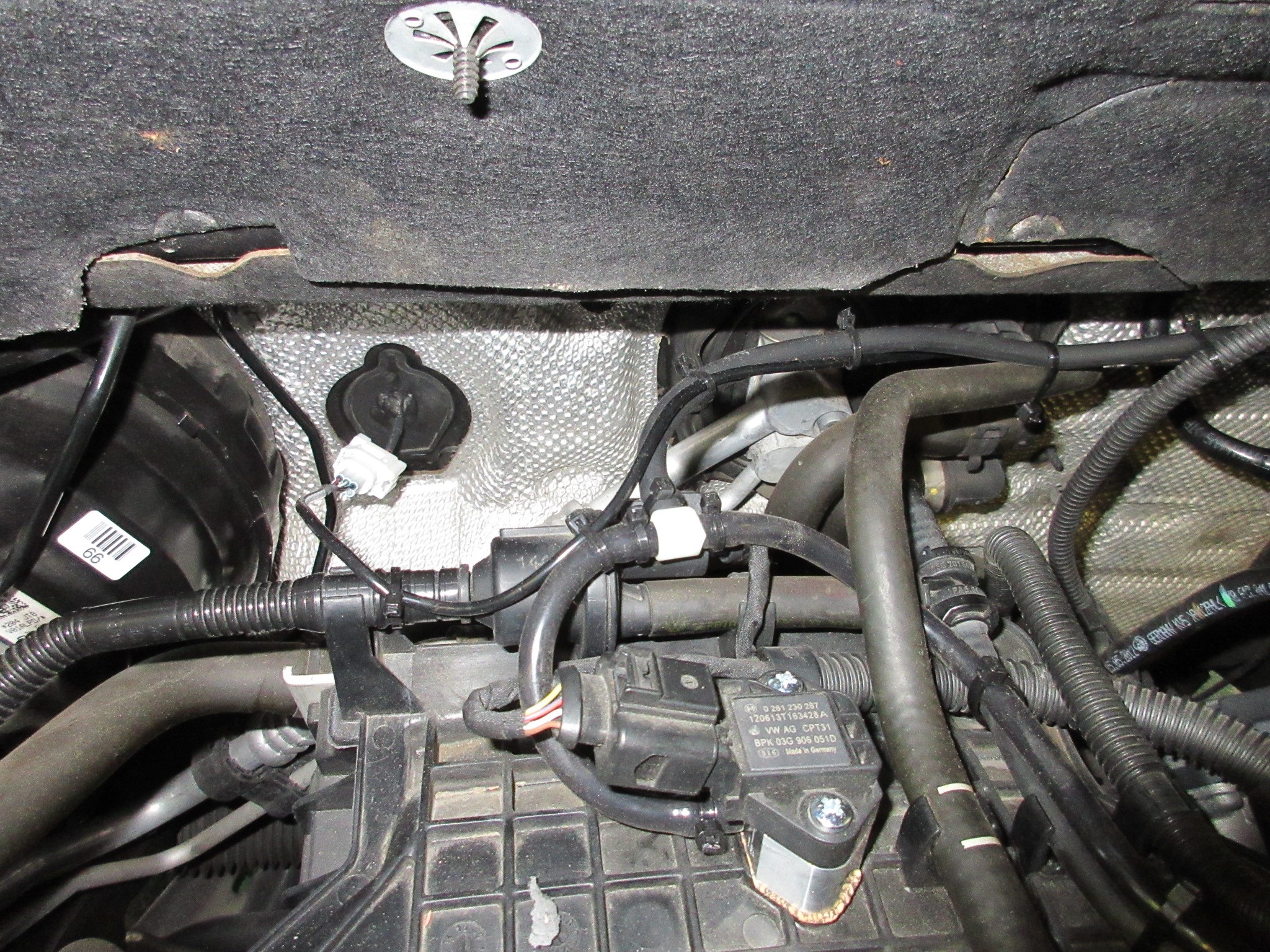 バルクヘッド部の純正配線の後ろに丁度M6のサービスホールがあったので、こちらを活用し固定しました。