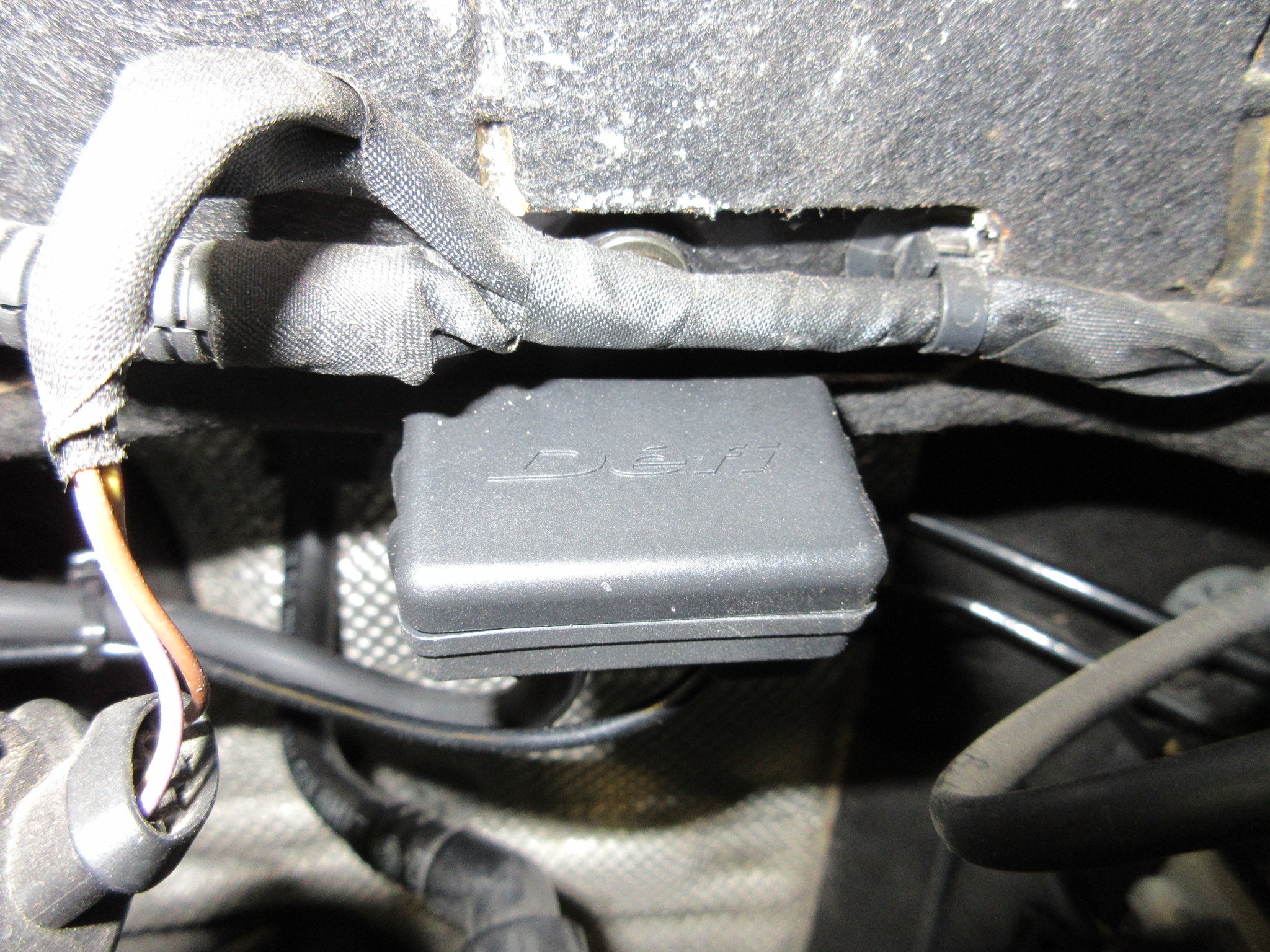 ダッシュボードに穴を開ければもっとスマートにハーネスを隠せますが、車両乗り換え等で売却する時の査定等を考慮するとこんな感じになります。