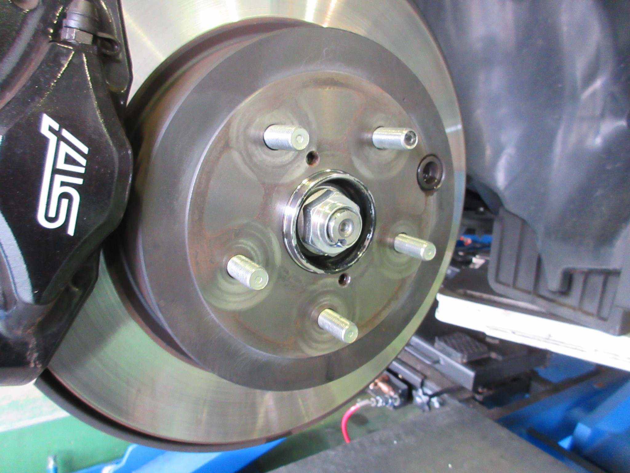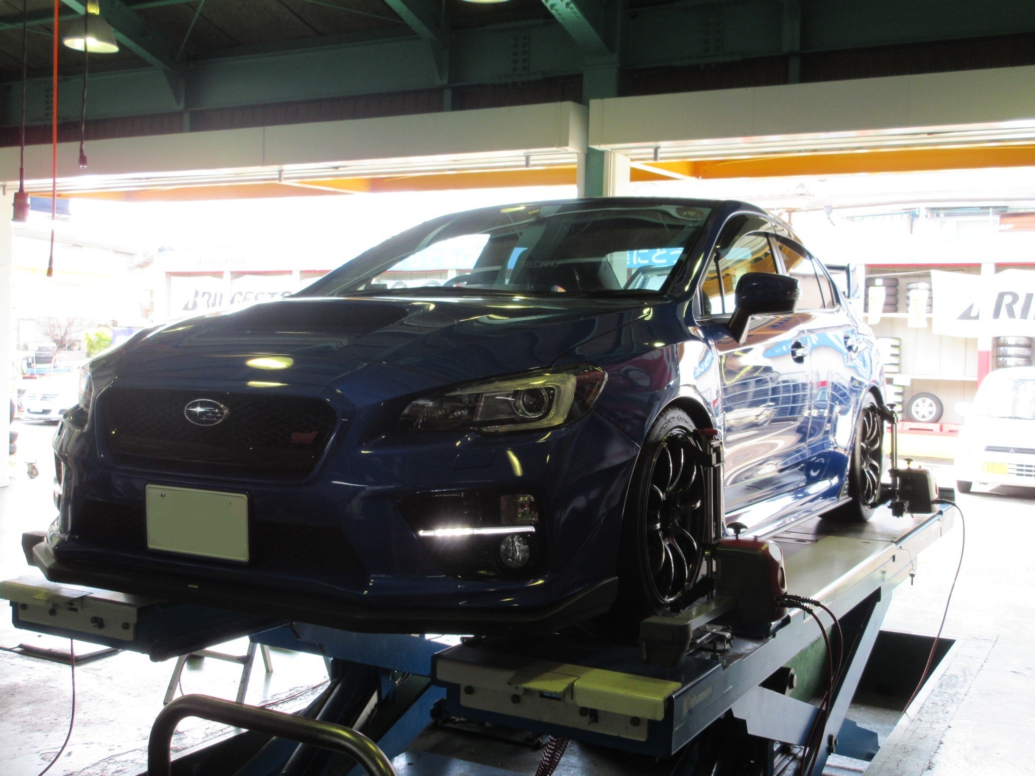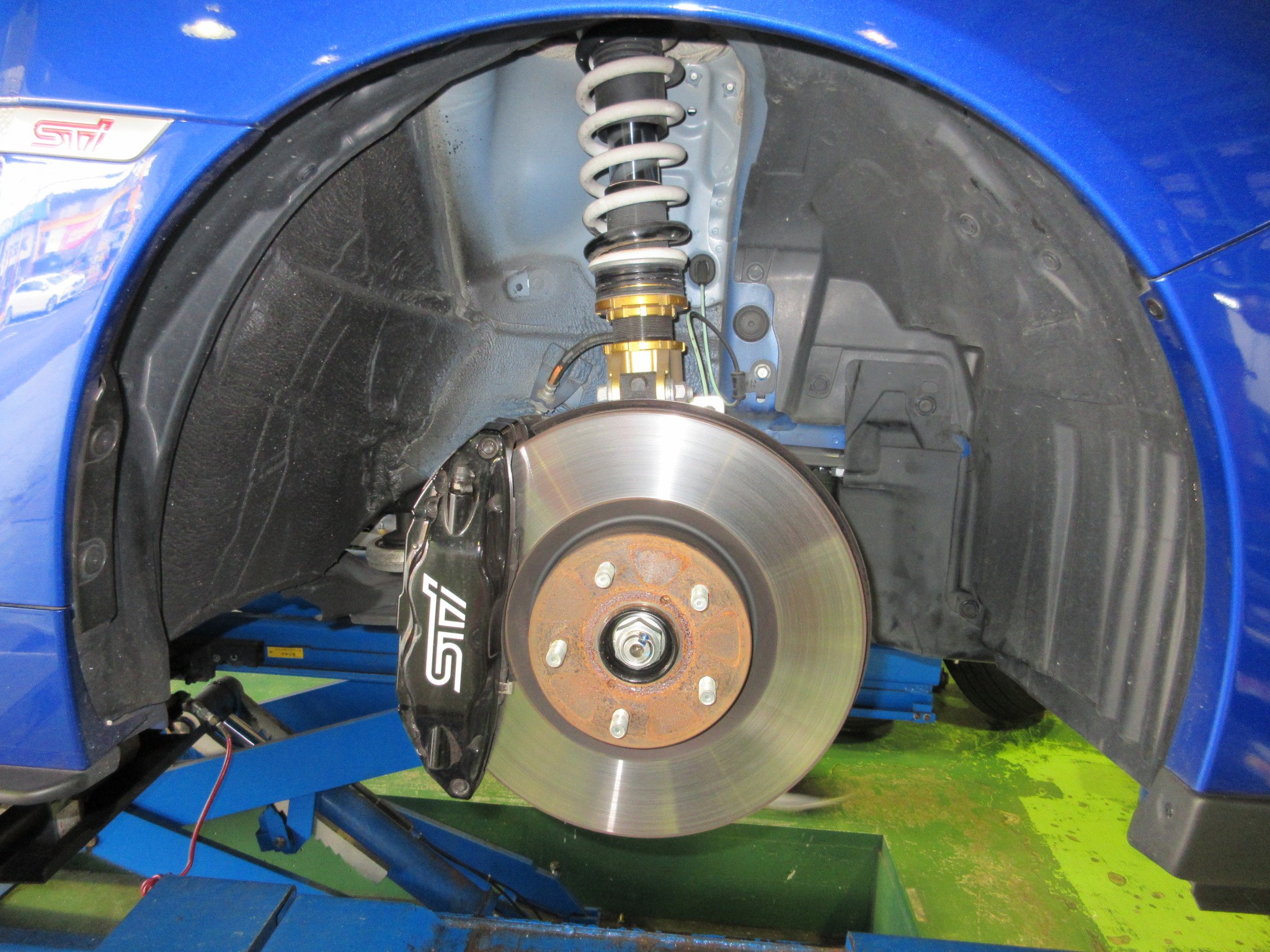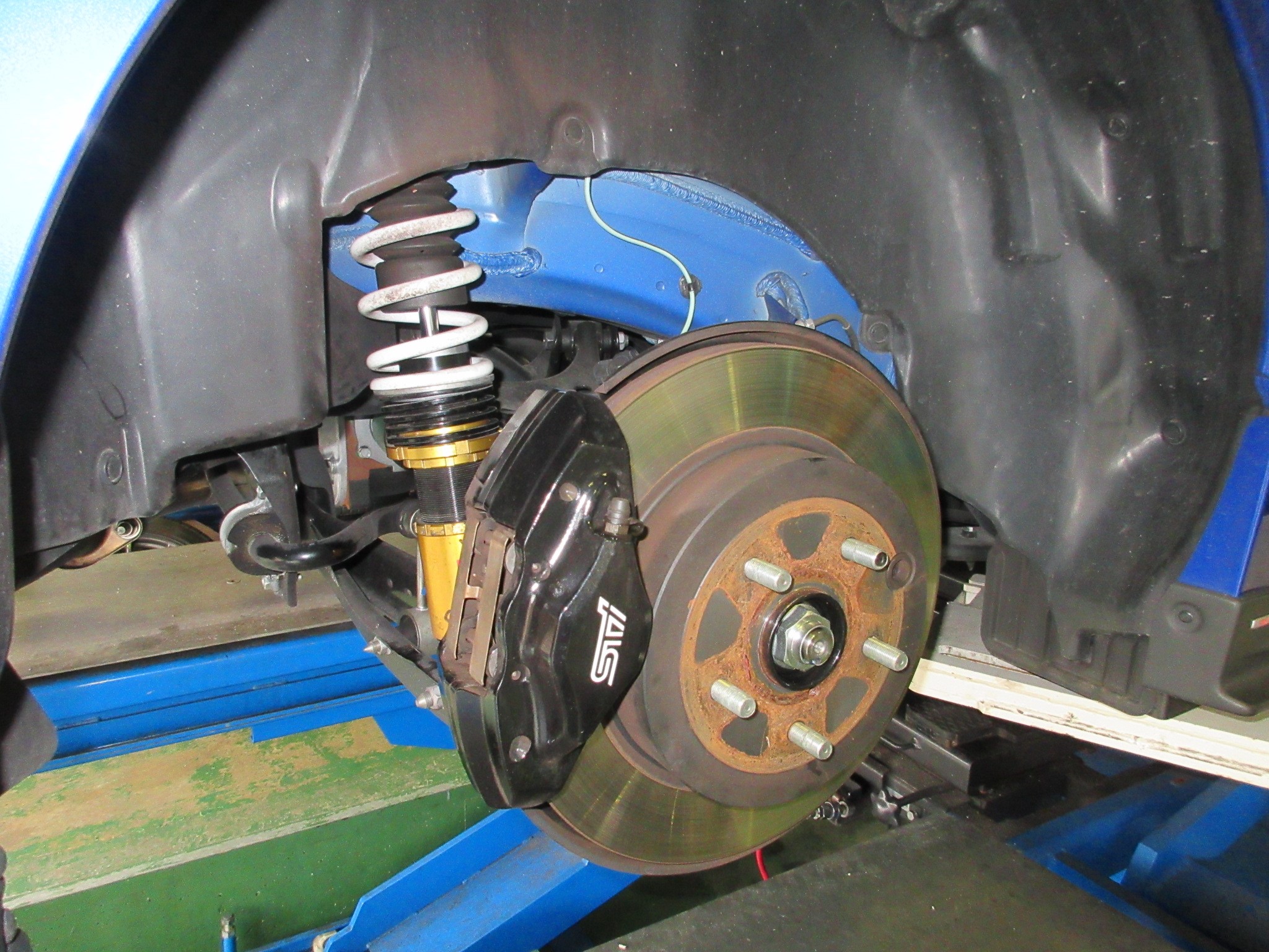WRX STI 車高調整で入庫です。