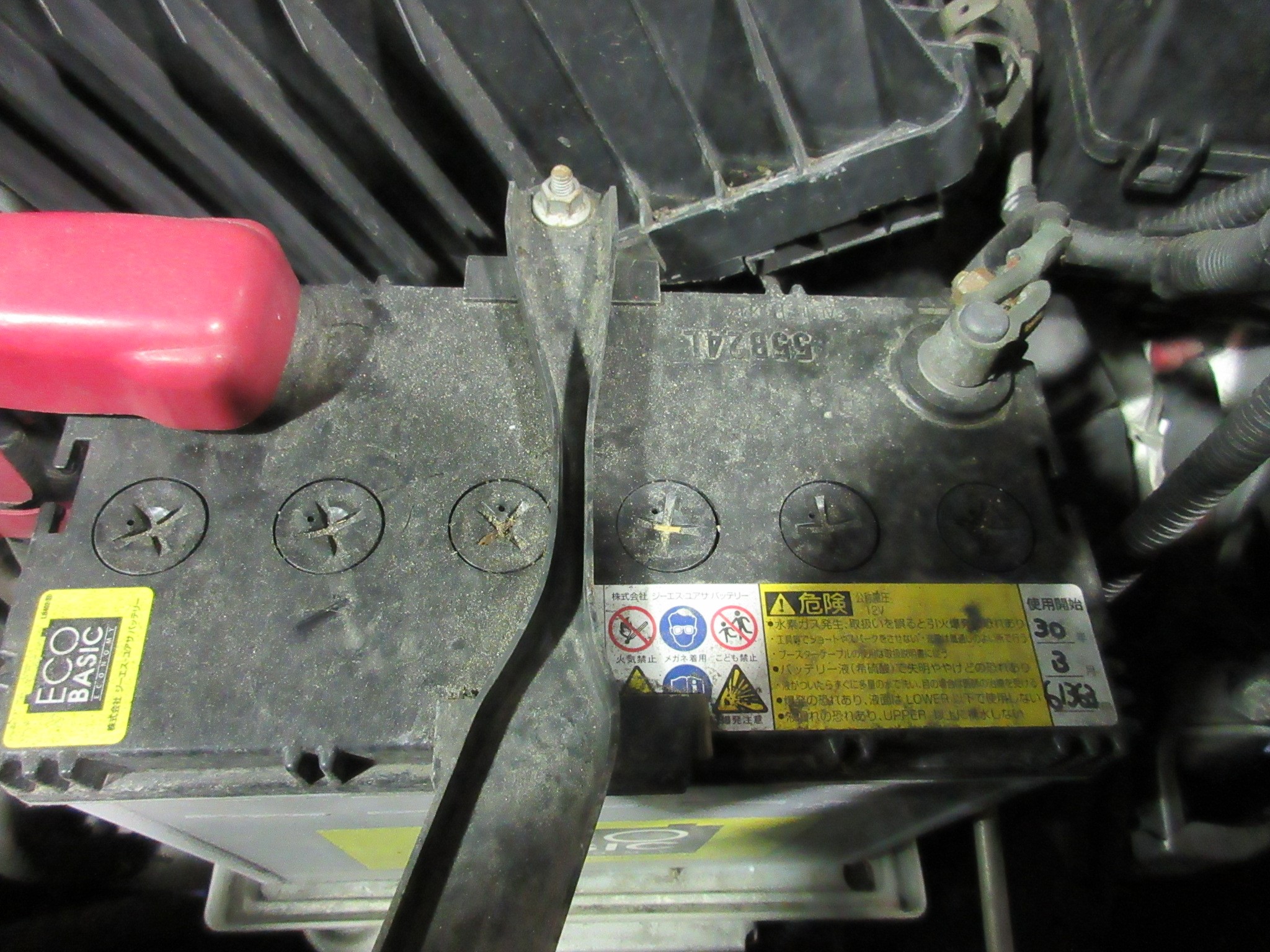 3年使用したバッテリーで外観も少しくたびれてる感じなので点検します。