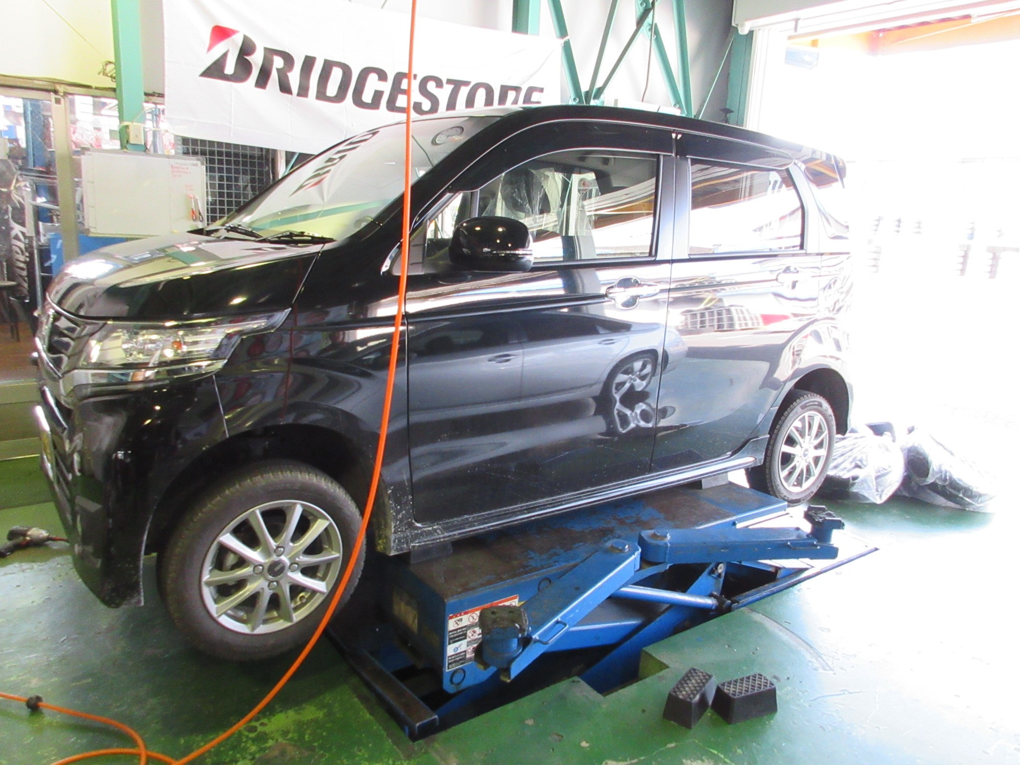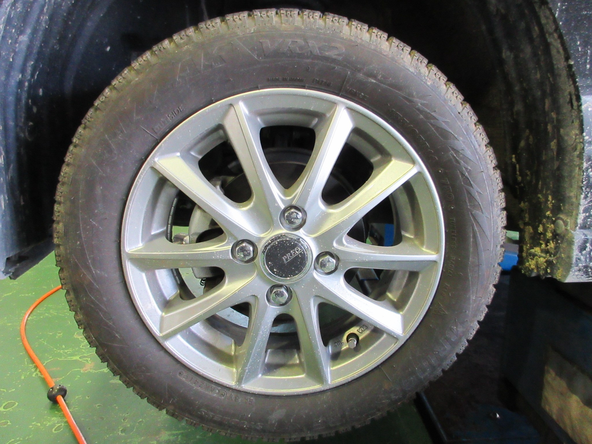 組み込んでバランス調整をし、きっちり車体に取り付けたら最後に冬用タイヤ・ホイールを積み込んで作業完了です。