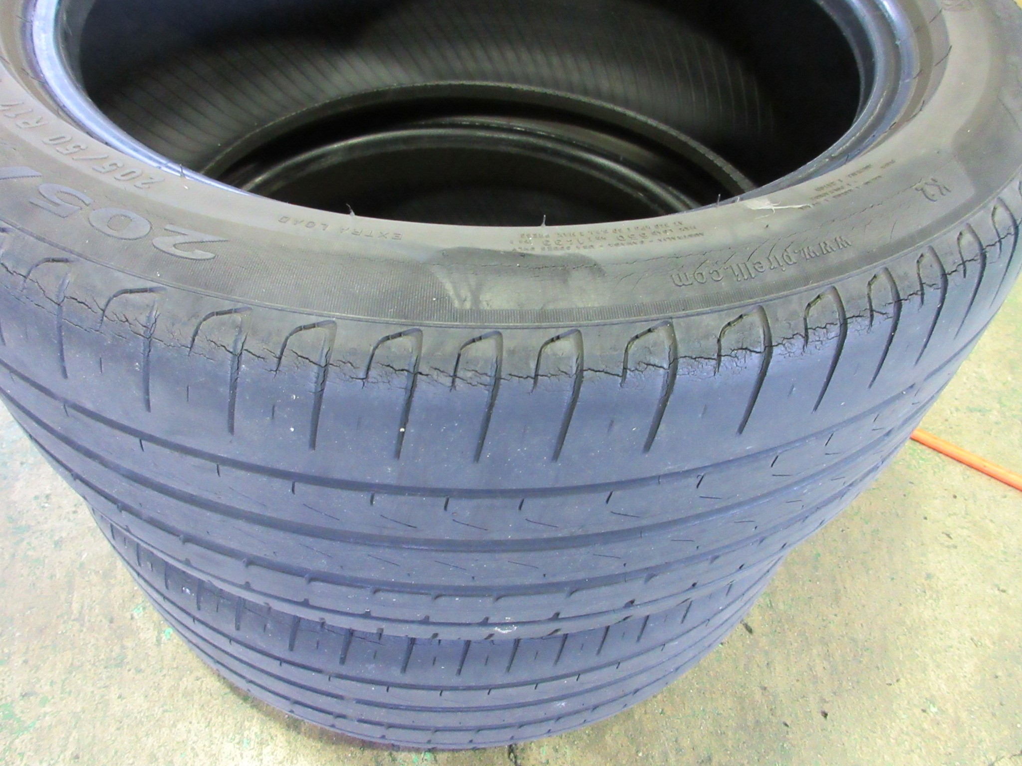 新車の時に装着されていたタイヤはヒビが多く入っていますね。