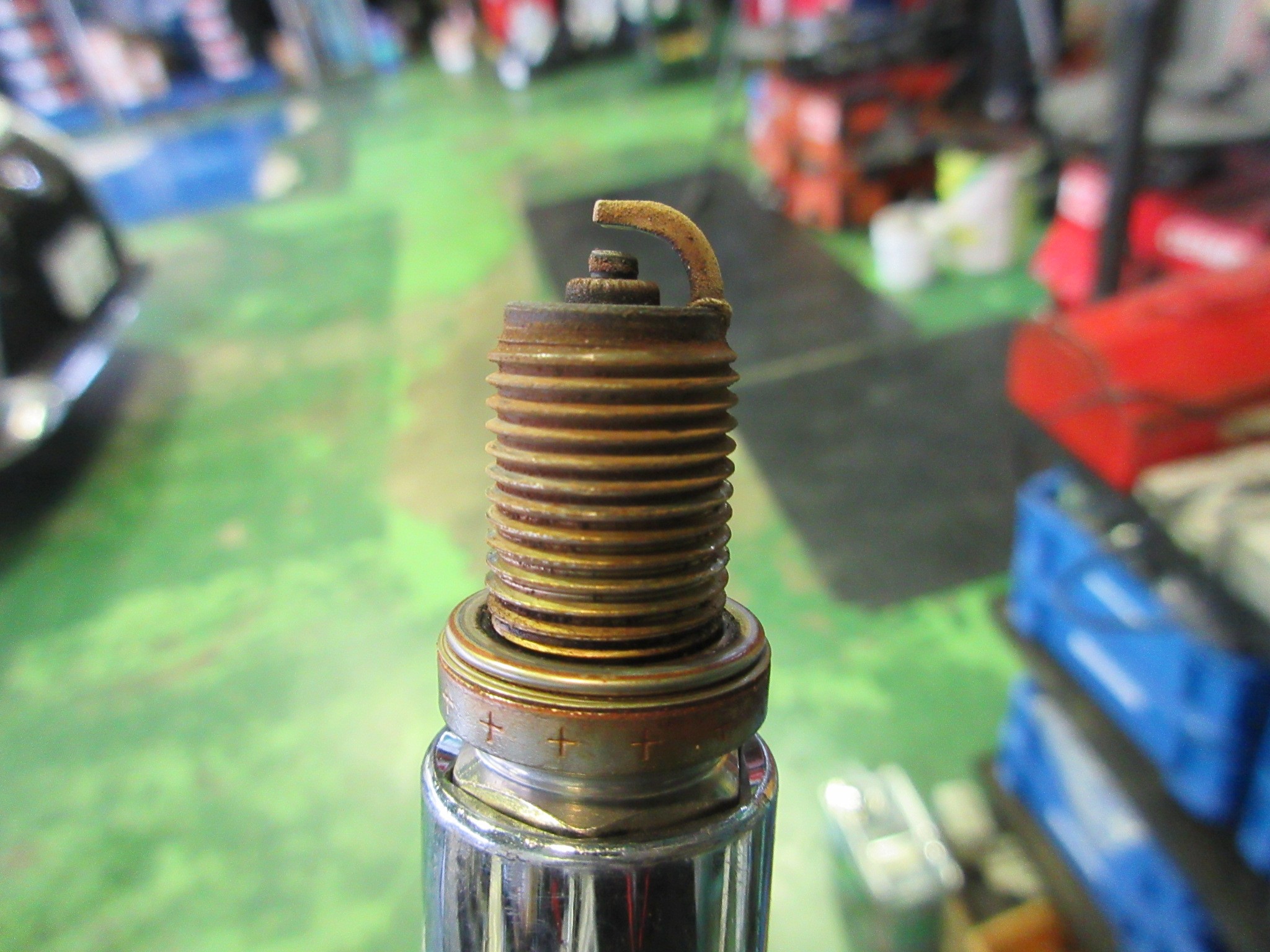 走行距離9万km程のお車ですが、一度もスパークプラグ交換をしていない様で、信号待ち等の停車中に稀に失火症状が出るとのこと。イグニッションコイルは問題ナシで燃料と空気の供給も特に問題はなかったので、手始めにスパークプラグを交換してみます。