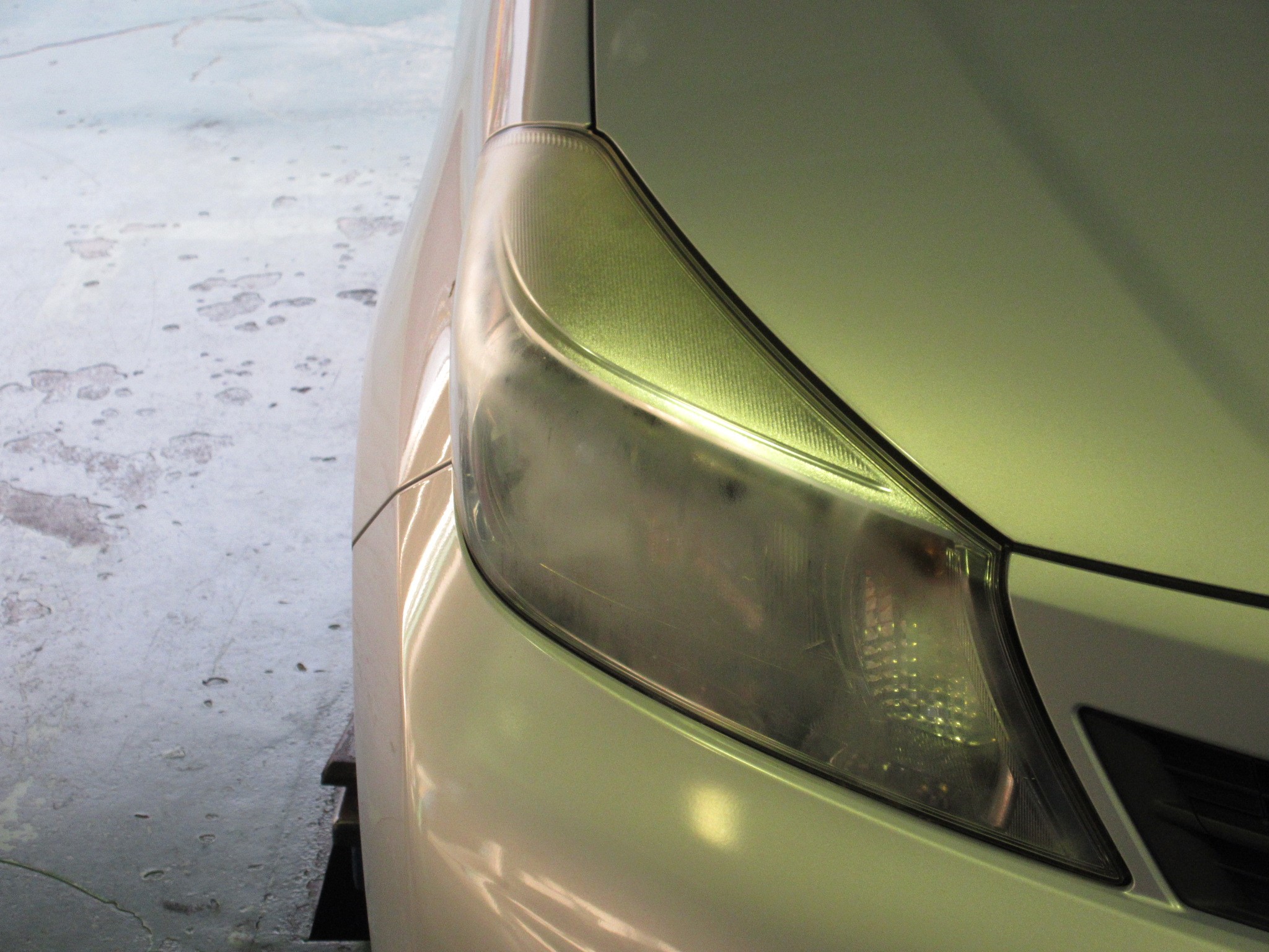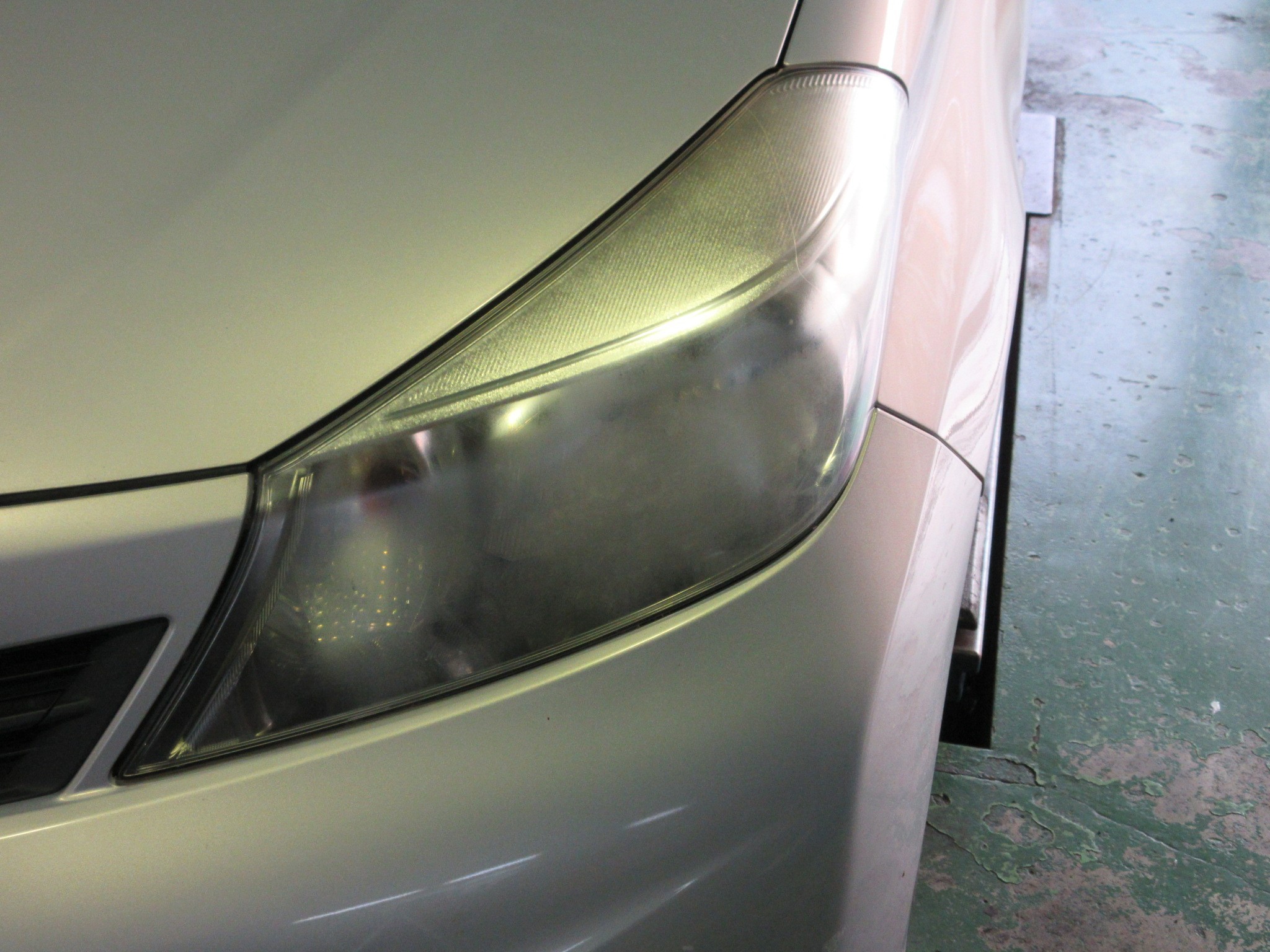 車検でのご入庫なのですが、ヘッドライトが真っ白にくすんでますね。