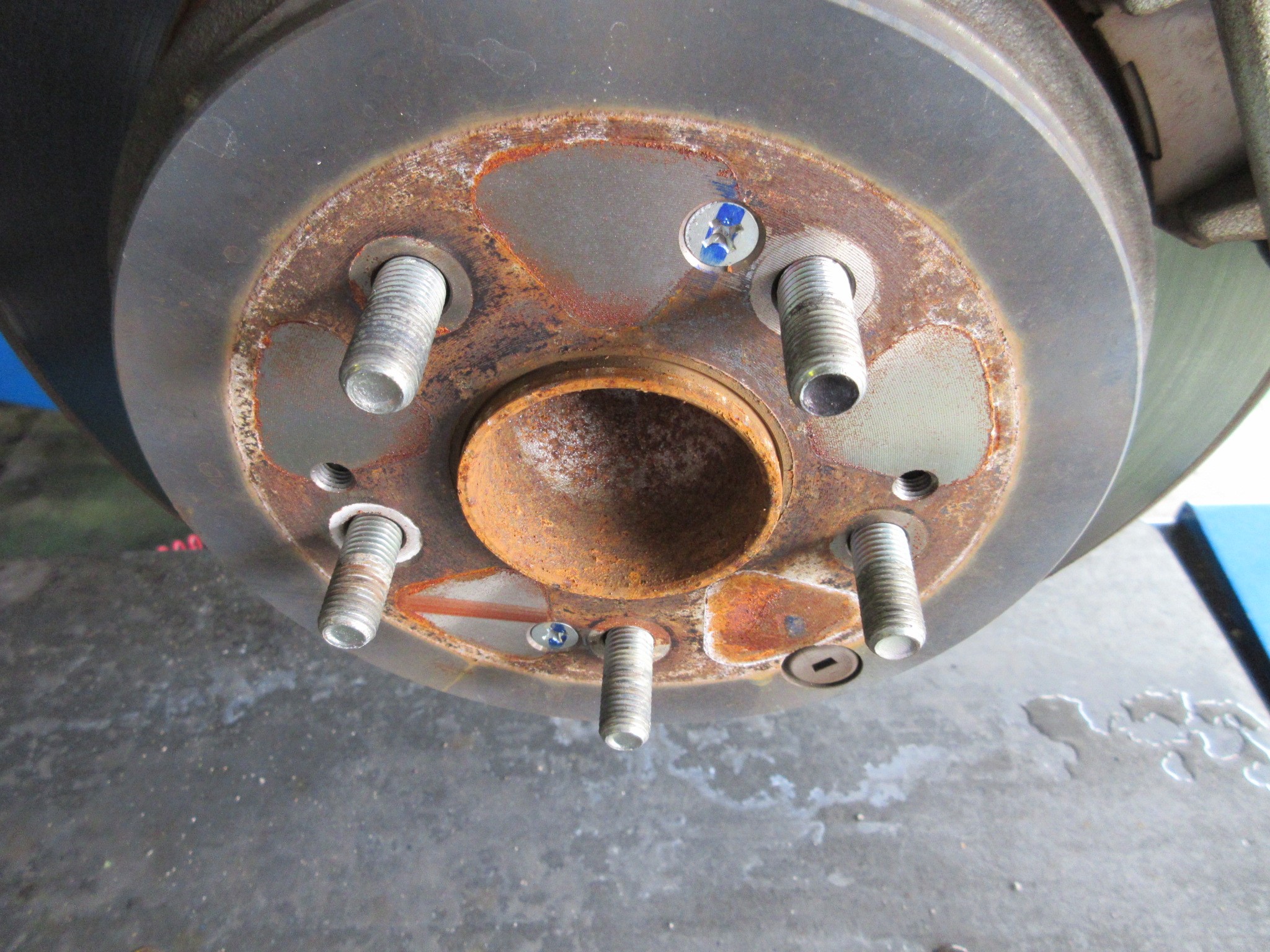 当店の人気オプション作業で、西澤スタッフがタイヤ交換を頑張っている間に中澤も一生懸命錆を落とし、