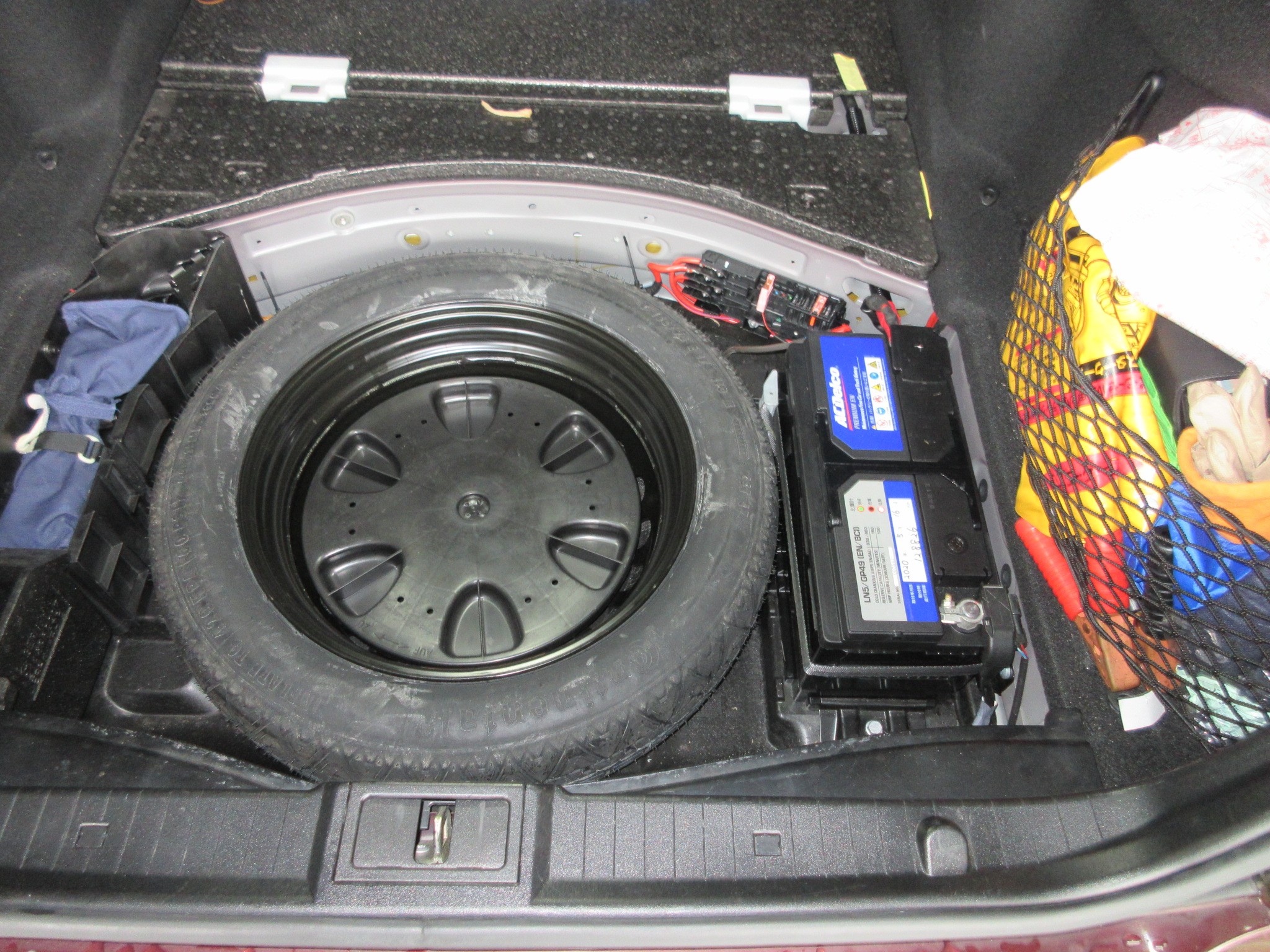 今回のメルセデス・ベンツはトランクのスペアタイヤ横にバッテリーが収まっていました。