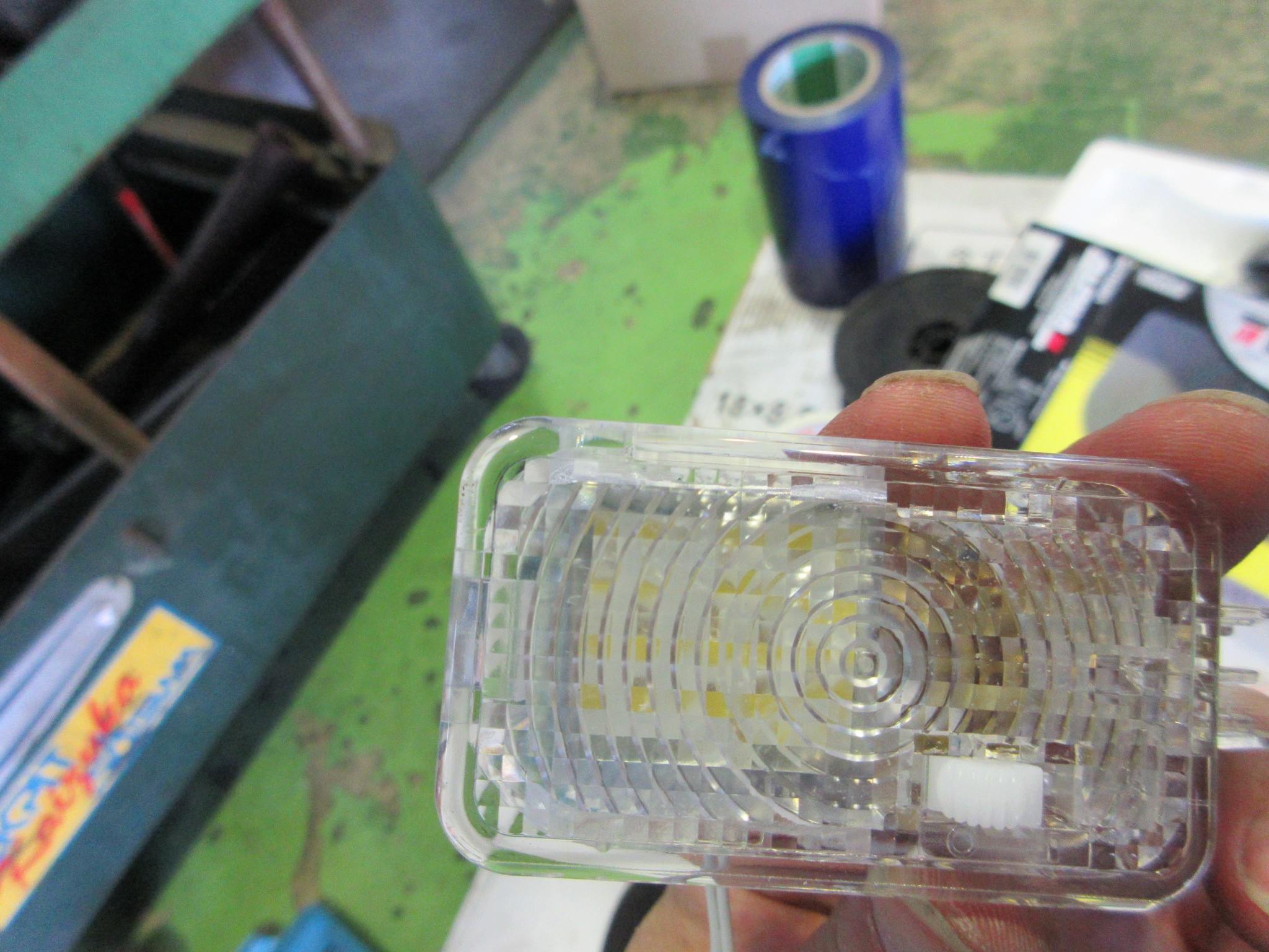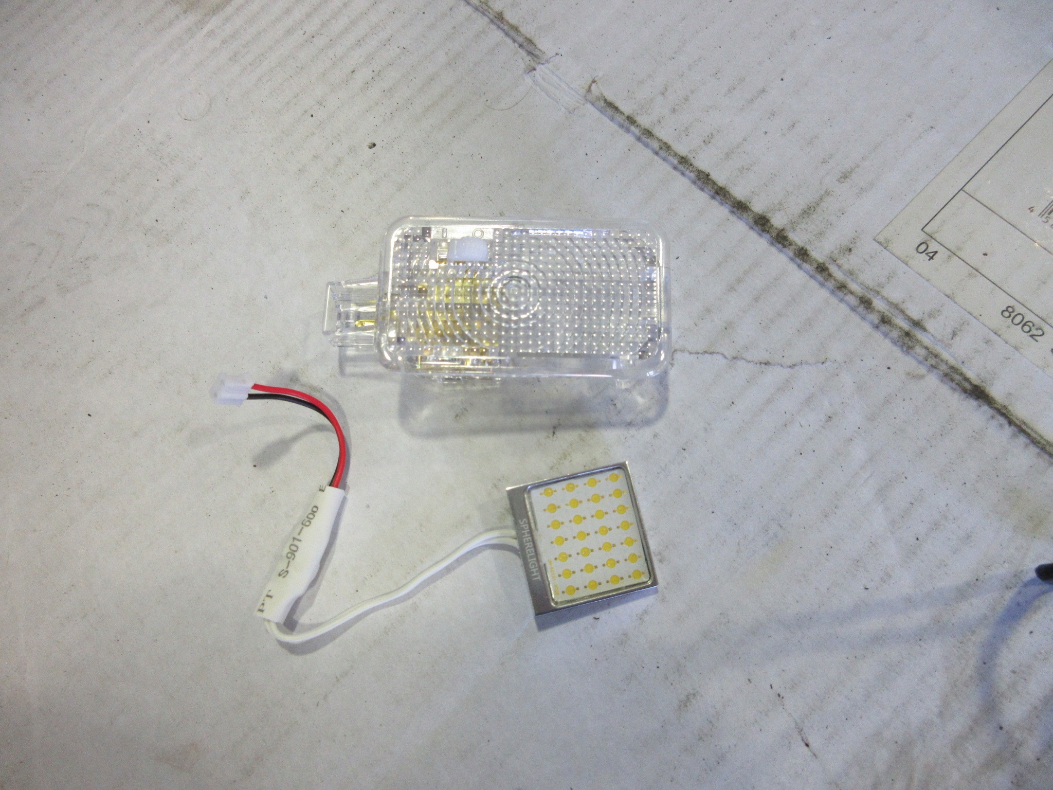 そして室内も明るくしたいという事で、ルームランプも面発光タイプのLEDに交換です。