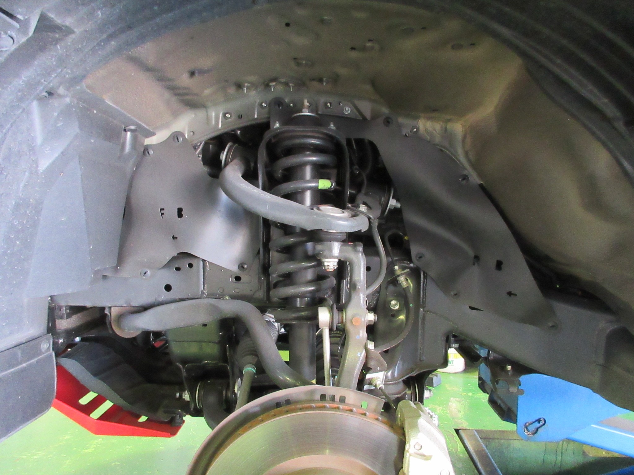今回はフロントのリフトアップ作業で入庫です。