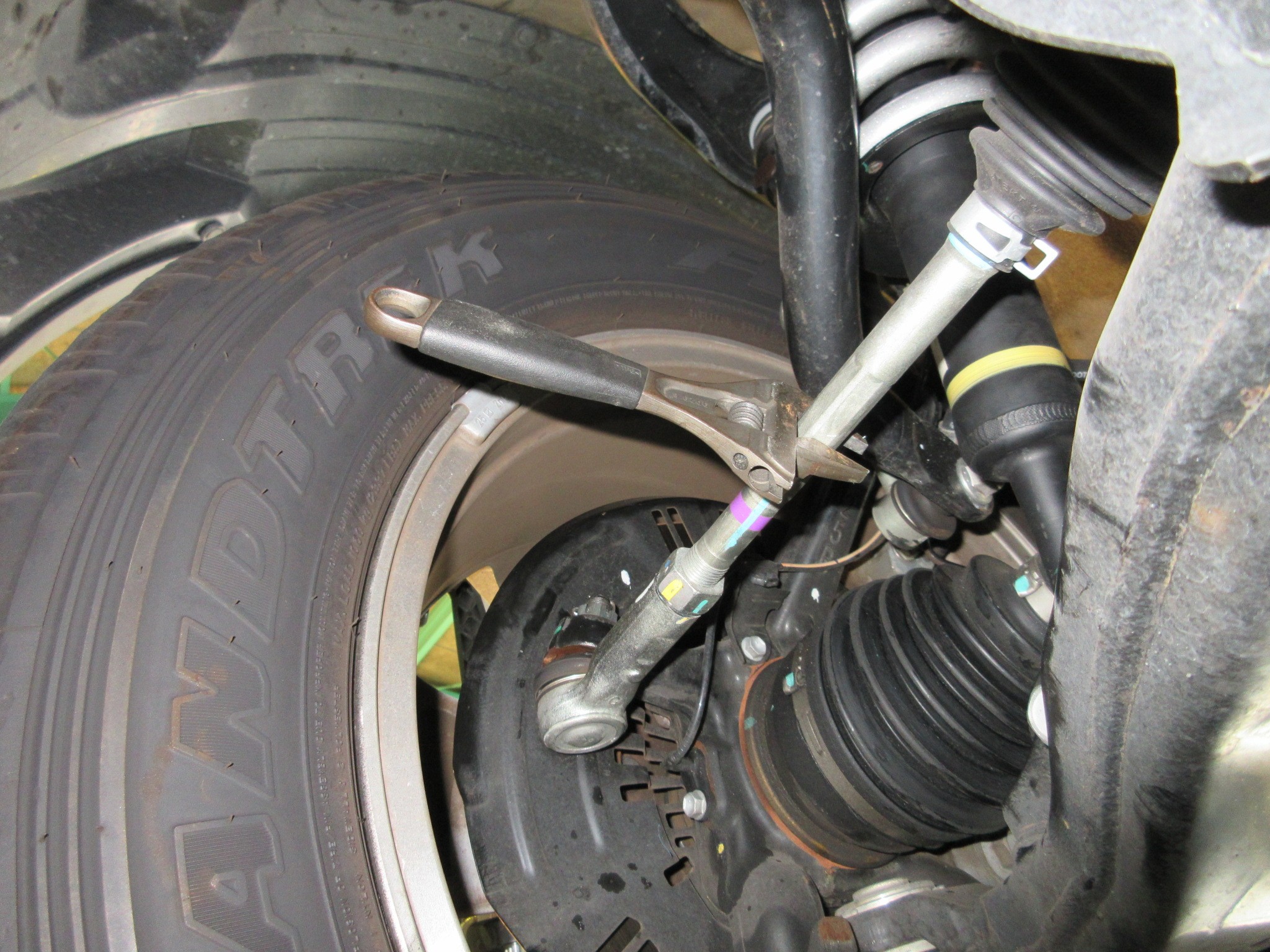 フロントは定番のタイロッドでのトー角調整に加えて