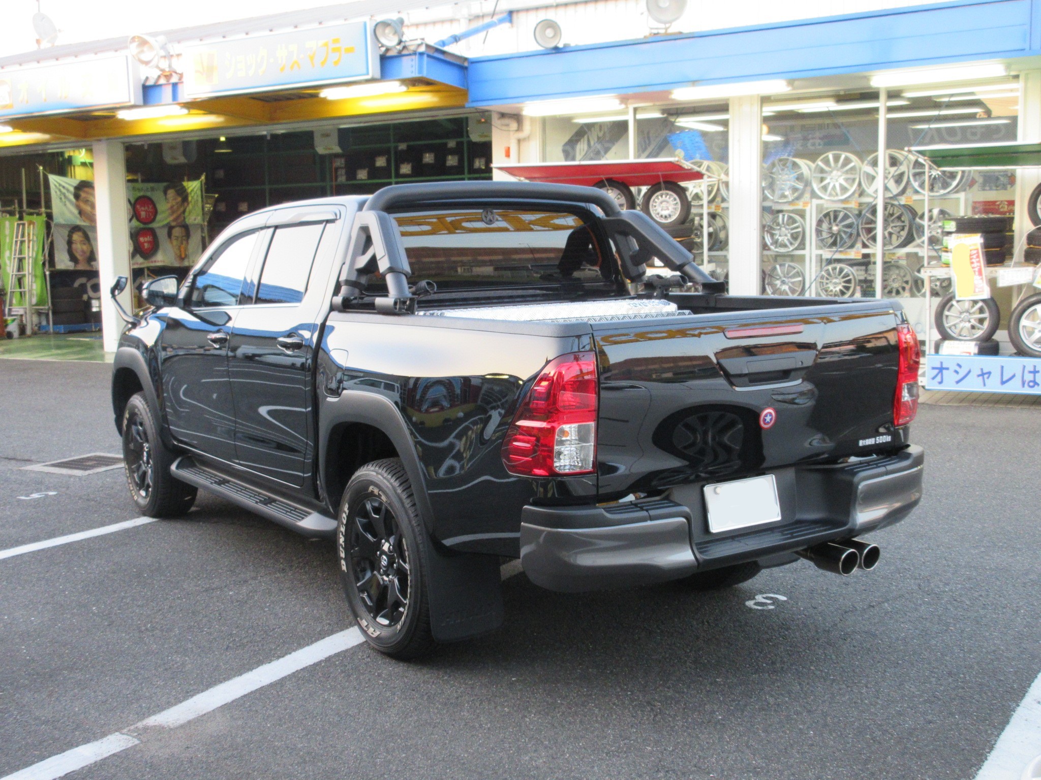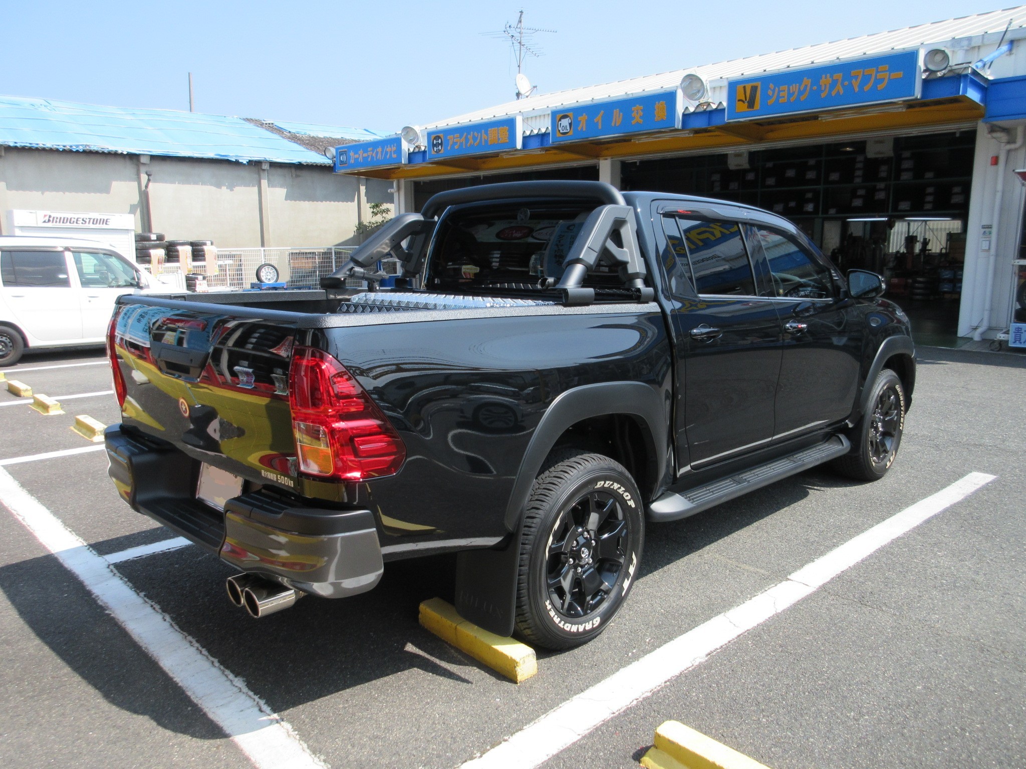 ハイラックスは荷台の部分に500キロの積載が可能となっているので、積載時にリヤが下がることを加味した純正のセッティングなんです。
