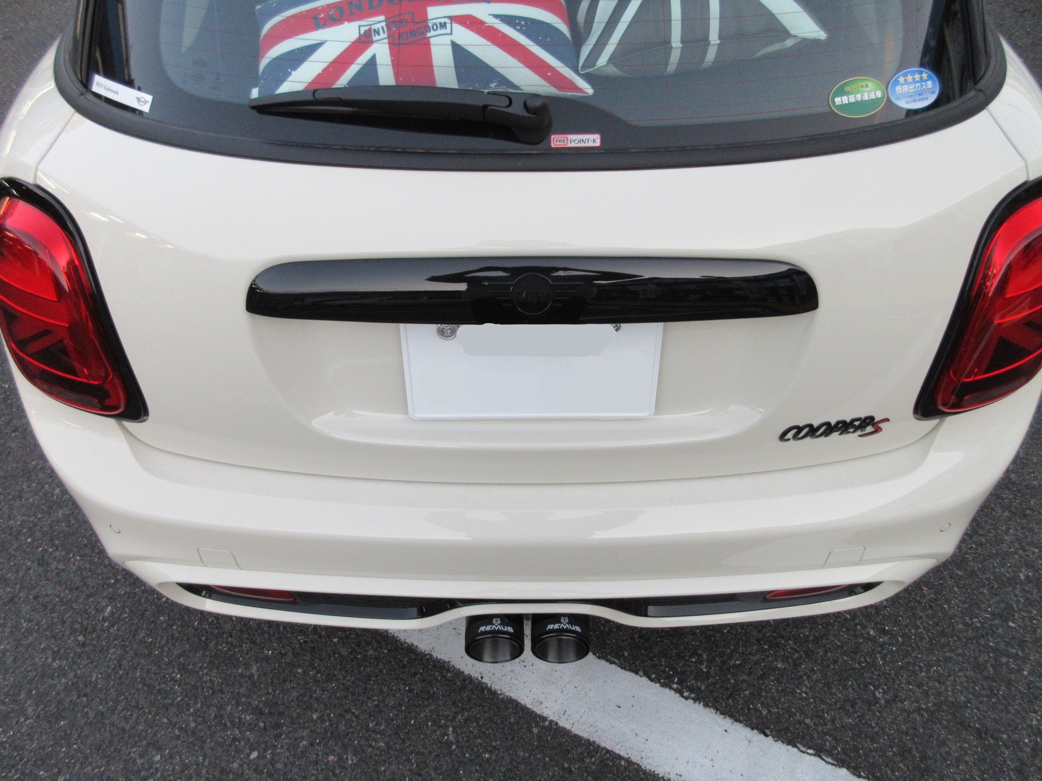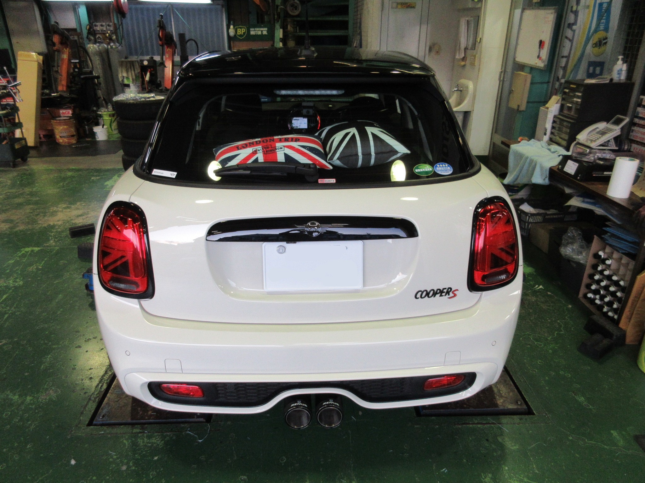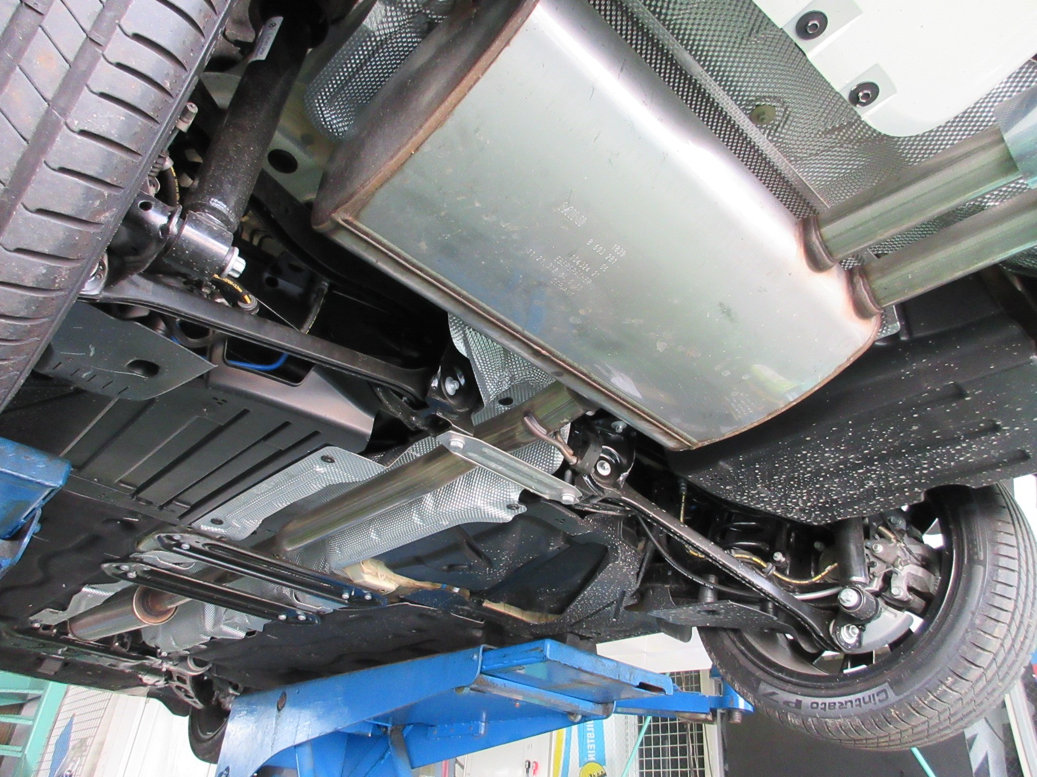 以前にローダウンをさせていただいたF55のミニにマフラーのお取り付けです。