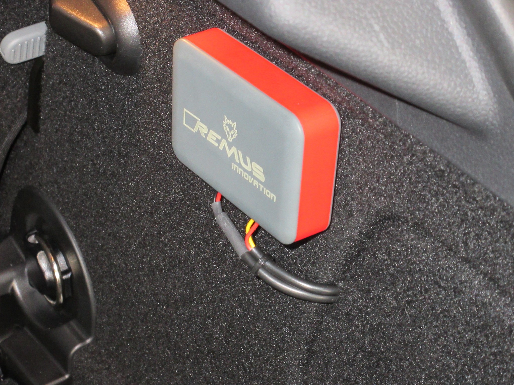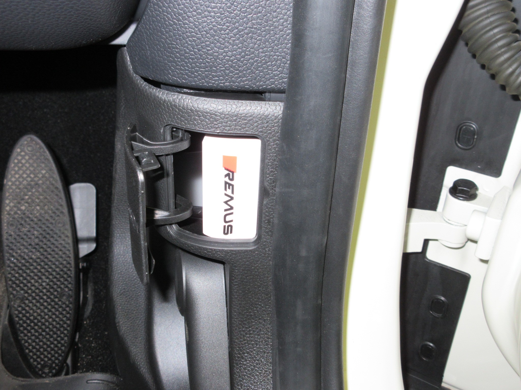 リモコンやブルートゥースの同調を行なう際にボタン操作が必要なので、触れるコチラにマジックテープで固定しました。