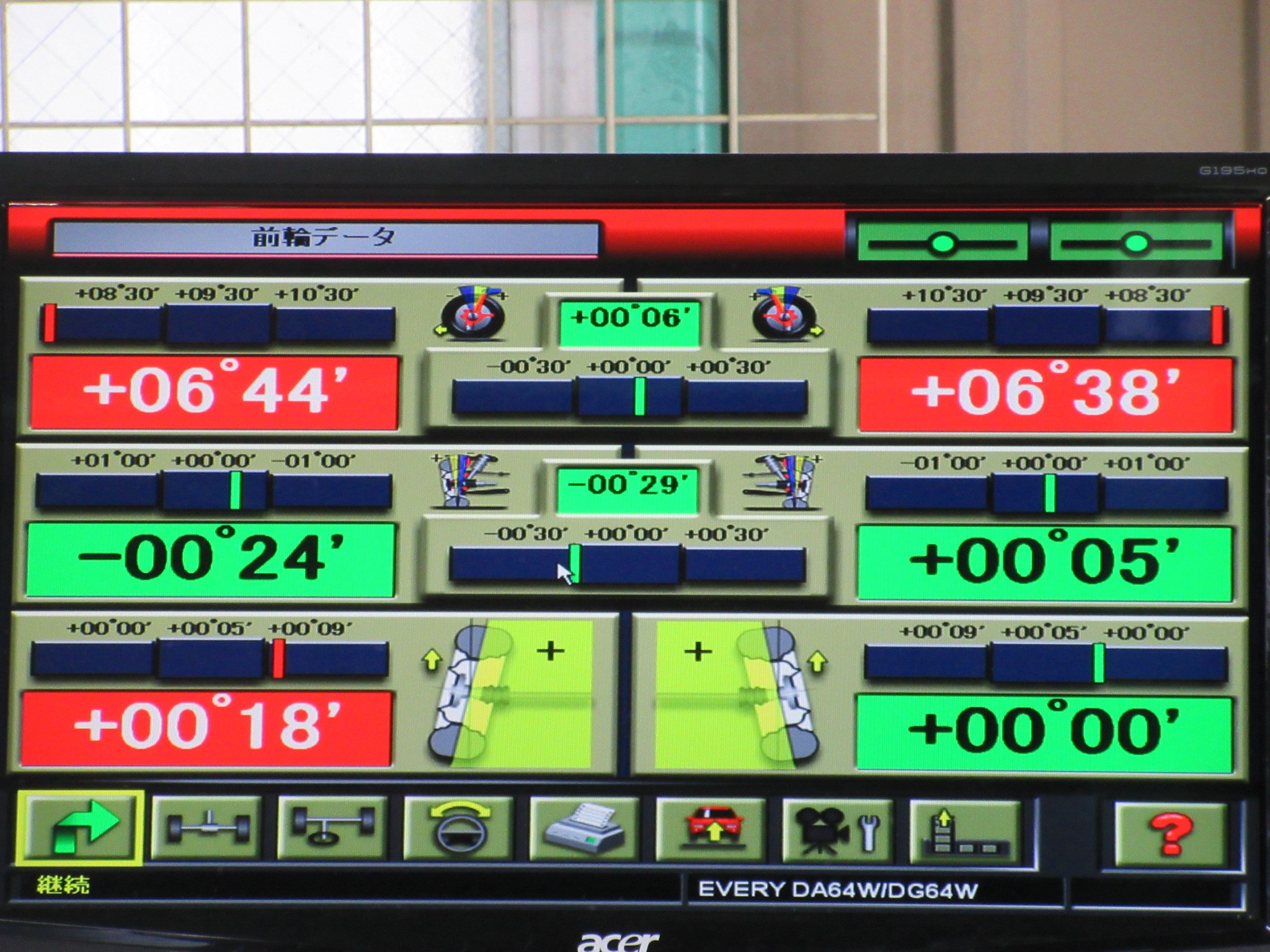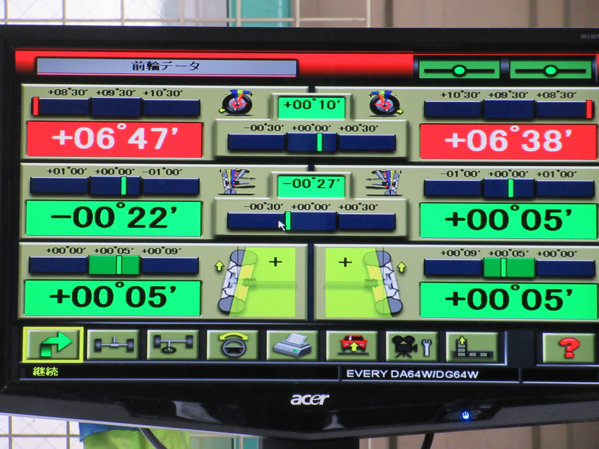 エブリイは純正の足廻りではフロントのトーのみの調整です。