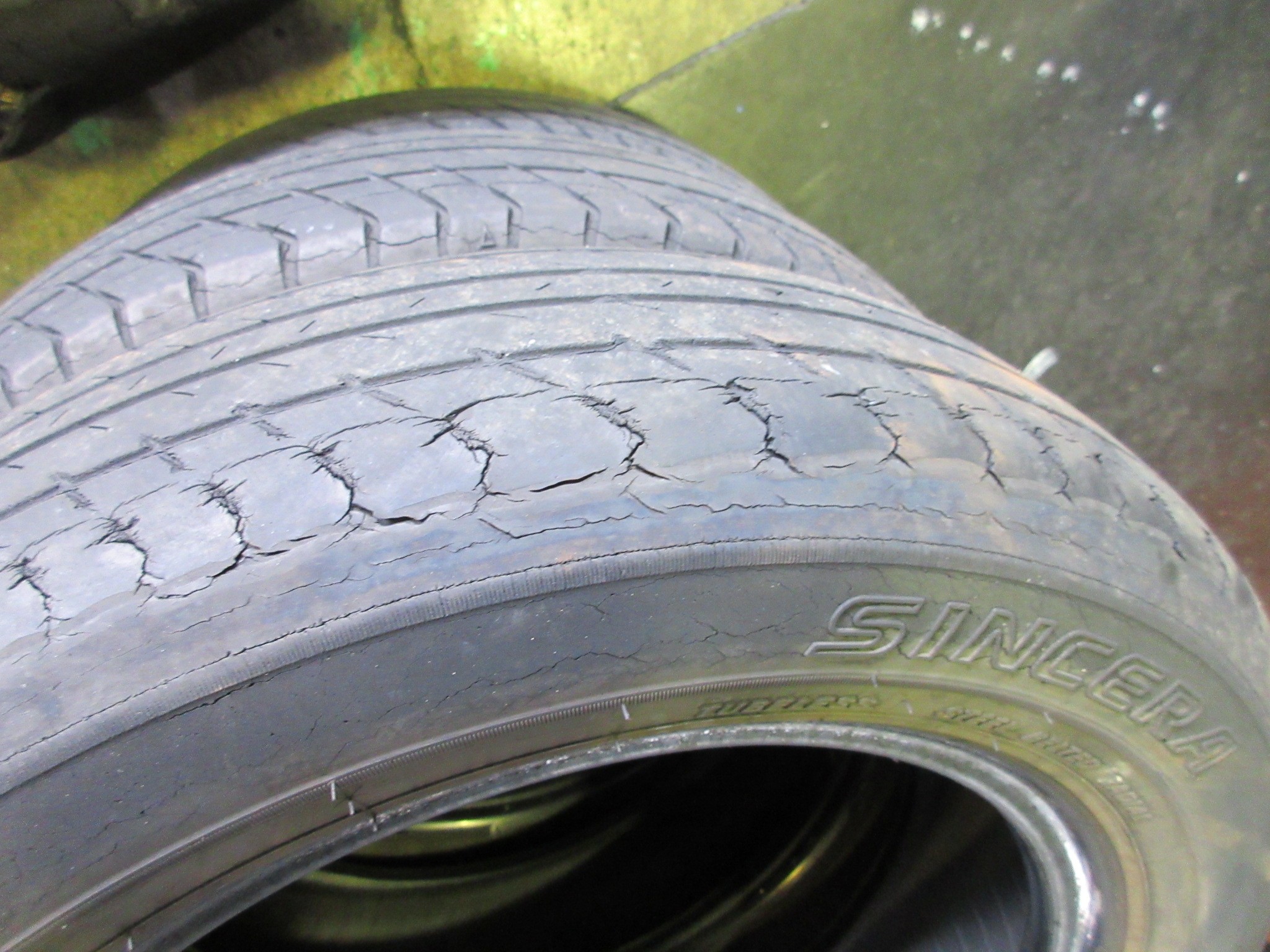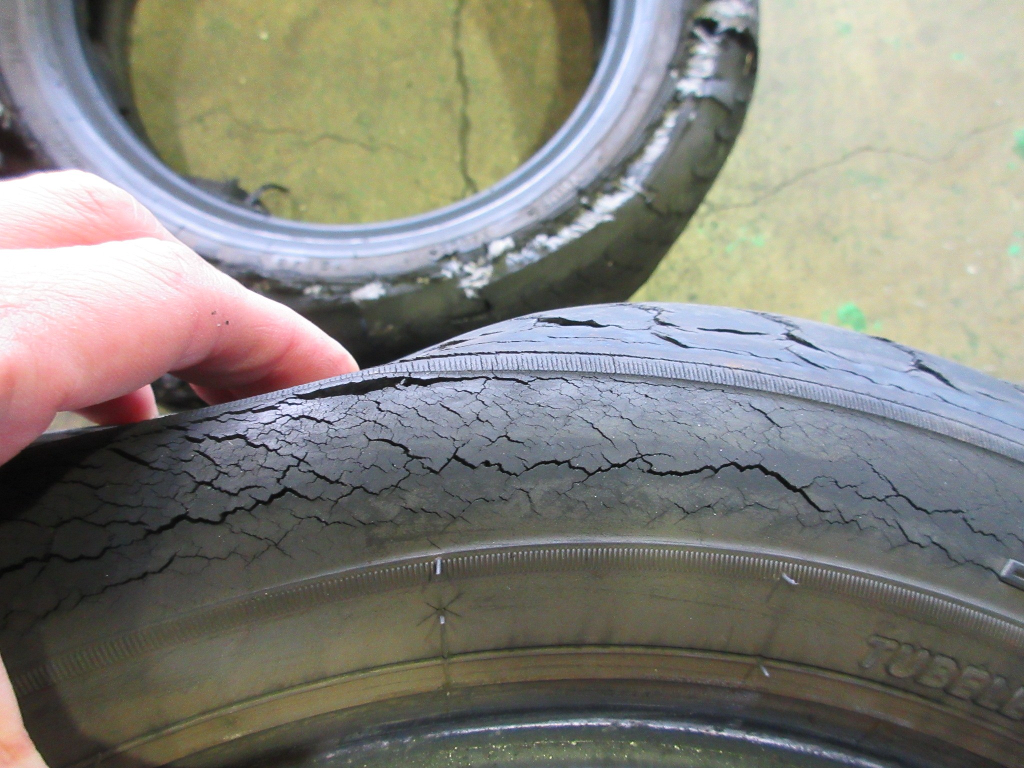 他のタイヤもバーストはしていないものの、劣化がかなり酷くていつバーストするかは時間の問題といった状態です。