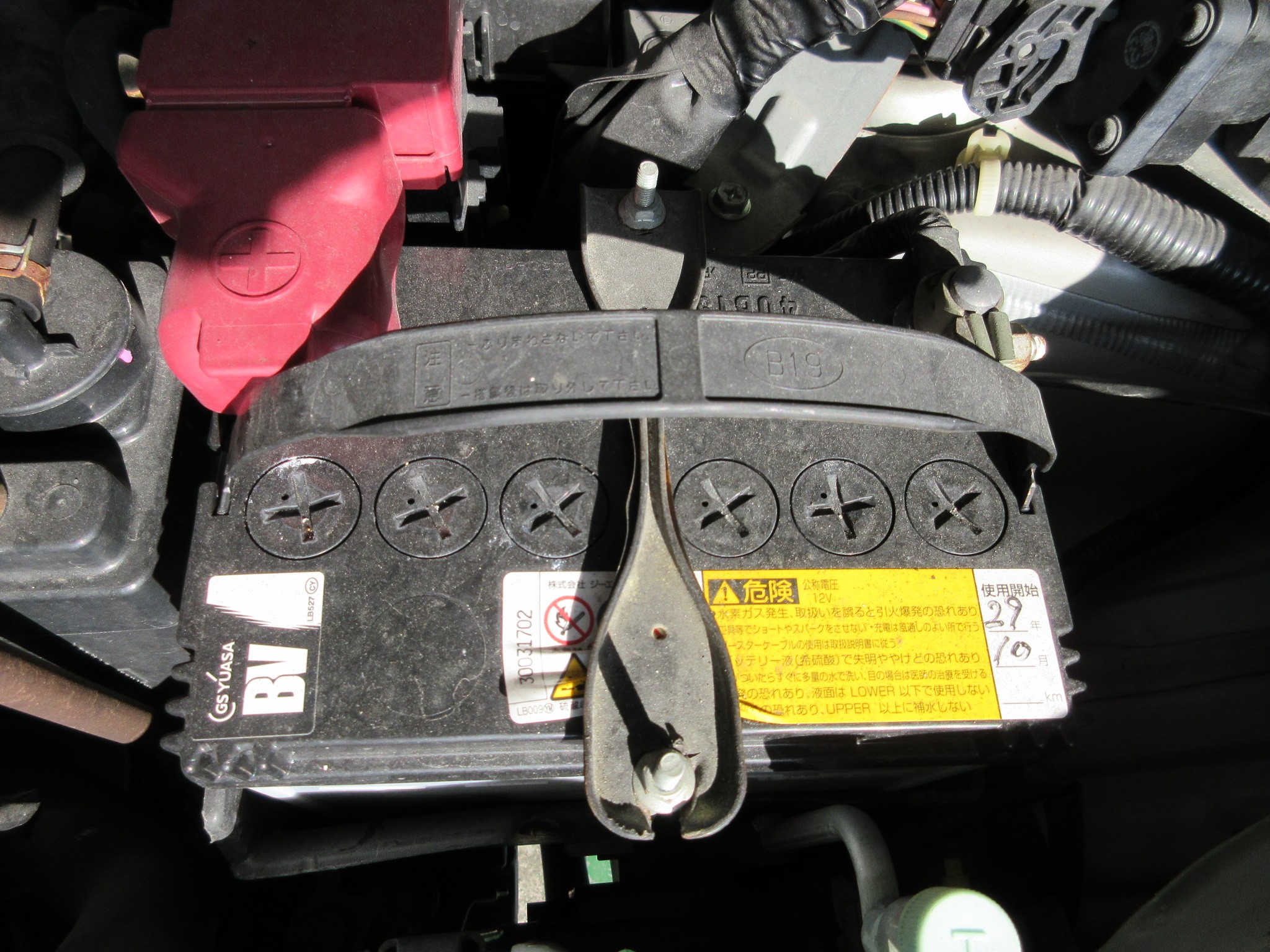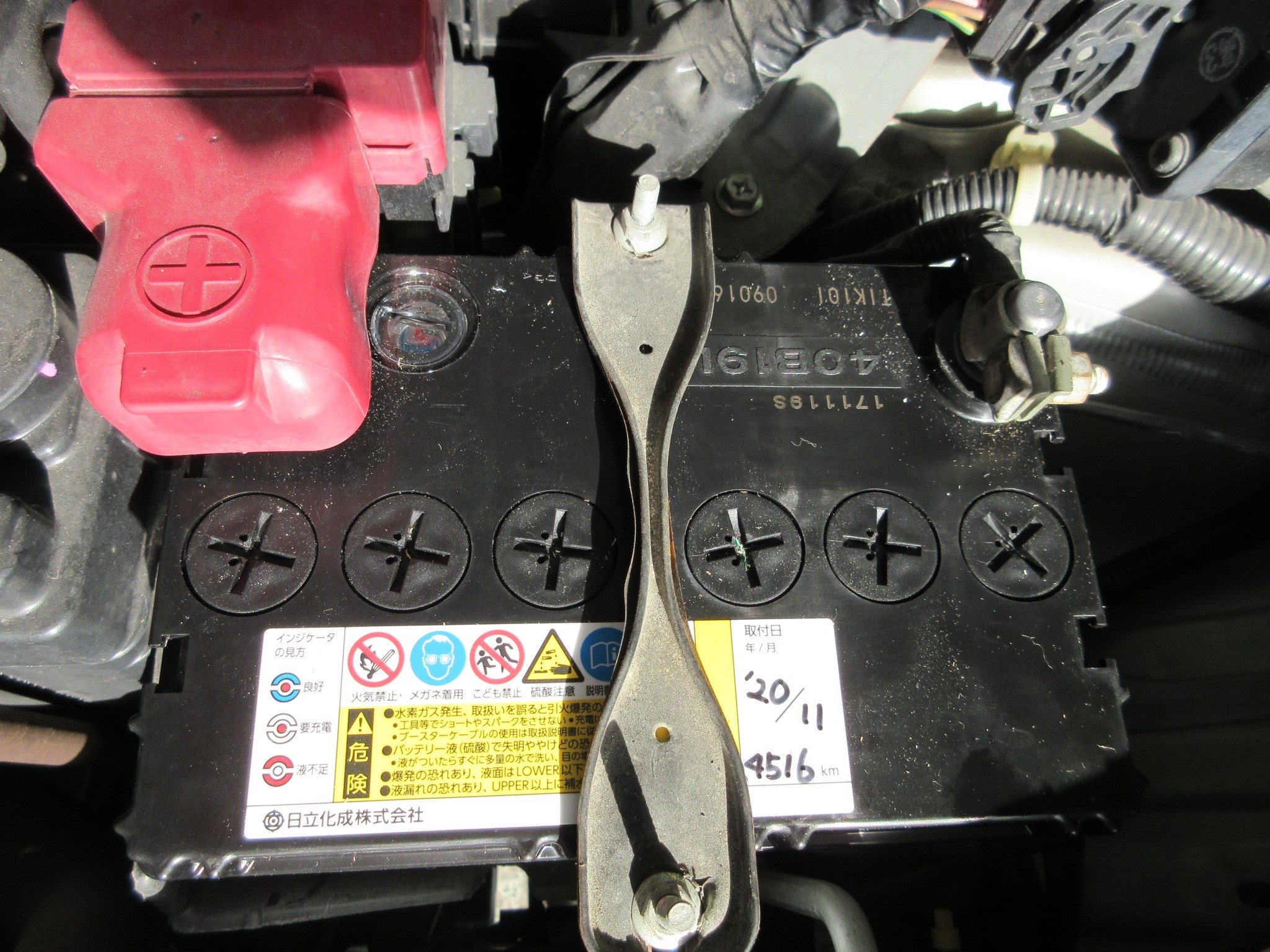 交換したら日付をバッテリーに直接記入して、ホルダーも取り付けて作業完了です。後はバックアップを取り外して、ラジオ・時計・パワーウィンドウ等のチェックをして、問題なければOKです。