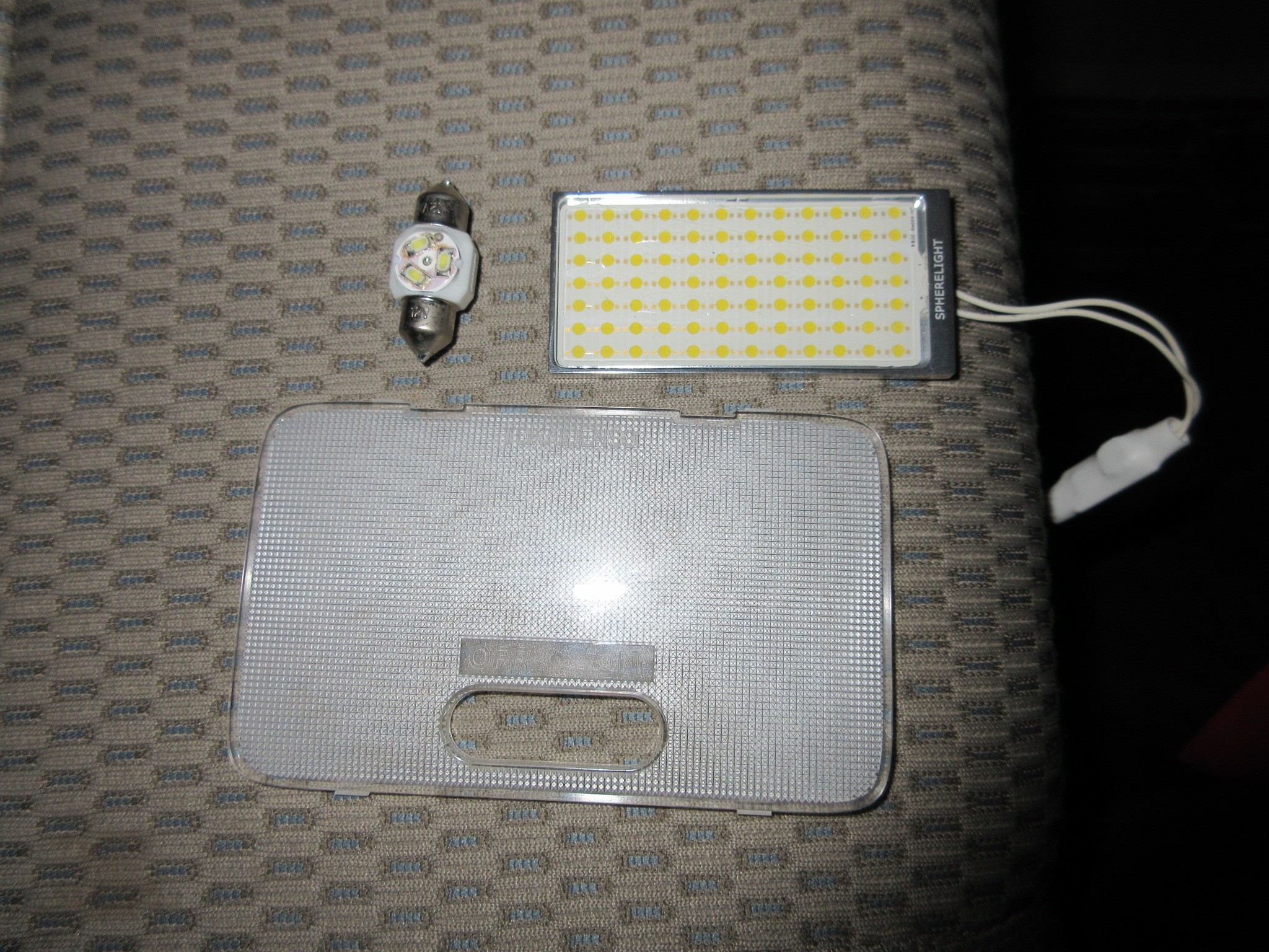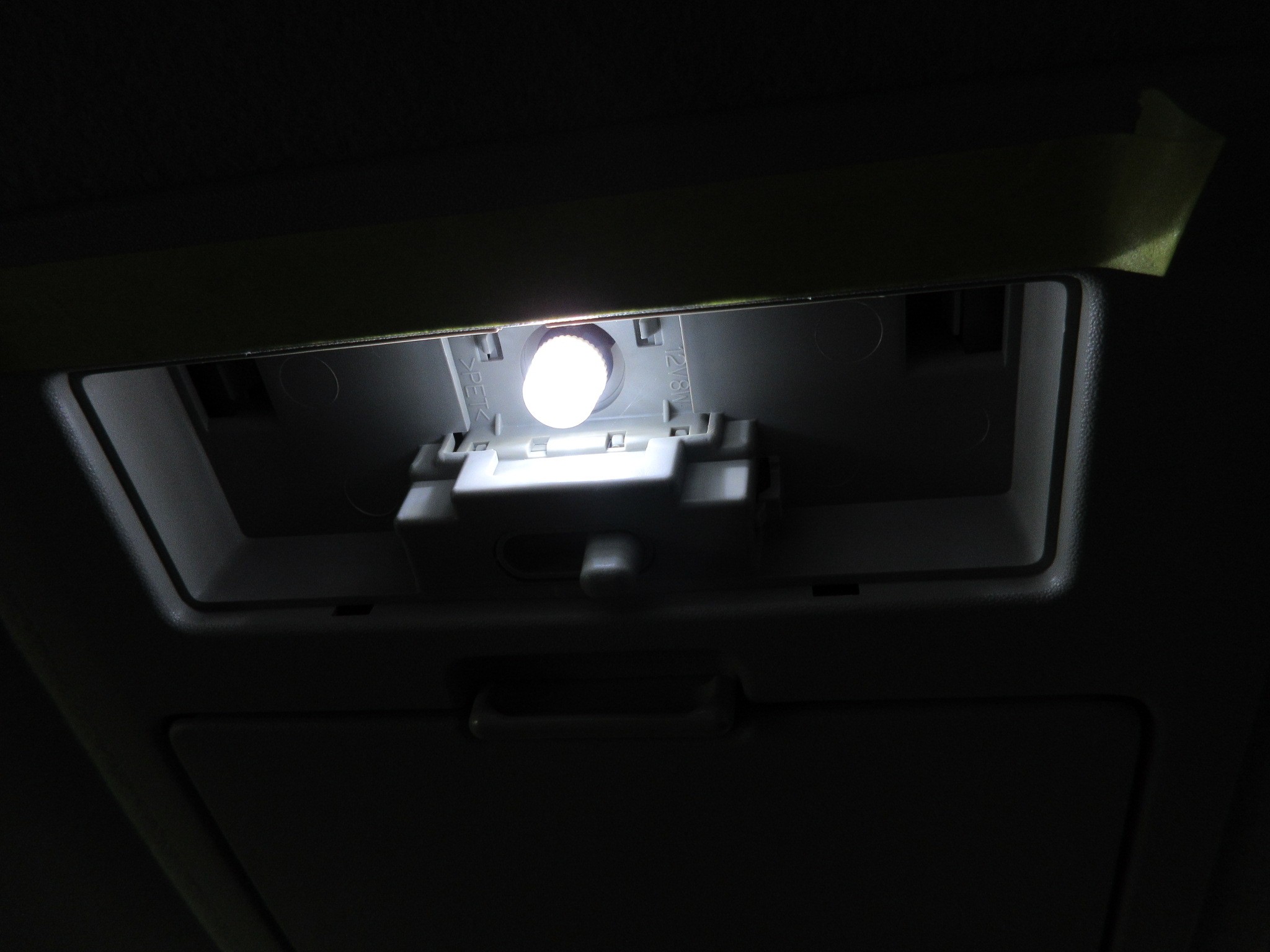 センターのルームランプも同じくバルブタイプのLEDが装着されていましたが