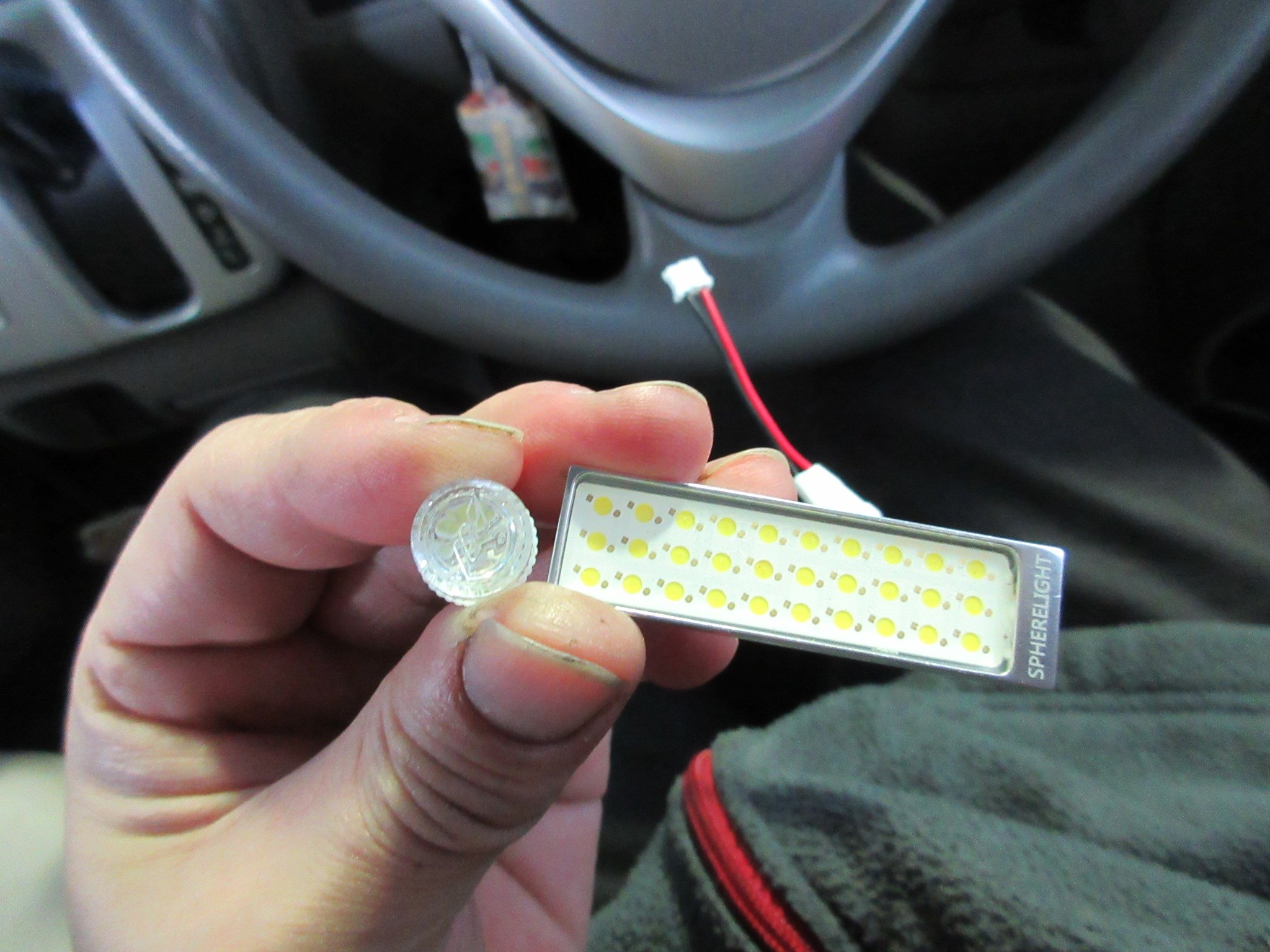 それでは早速ルームランプのLED化を開始・・・と思いきや、昨日のスペーシア同様すでにLEDが装着されていますね。
