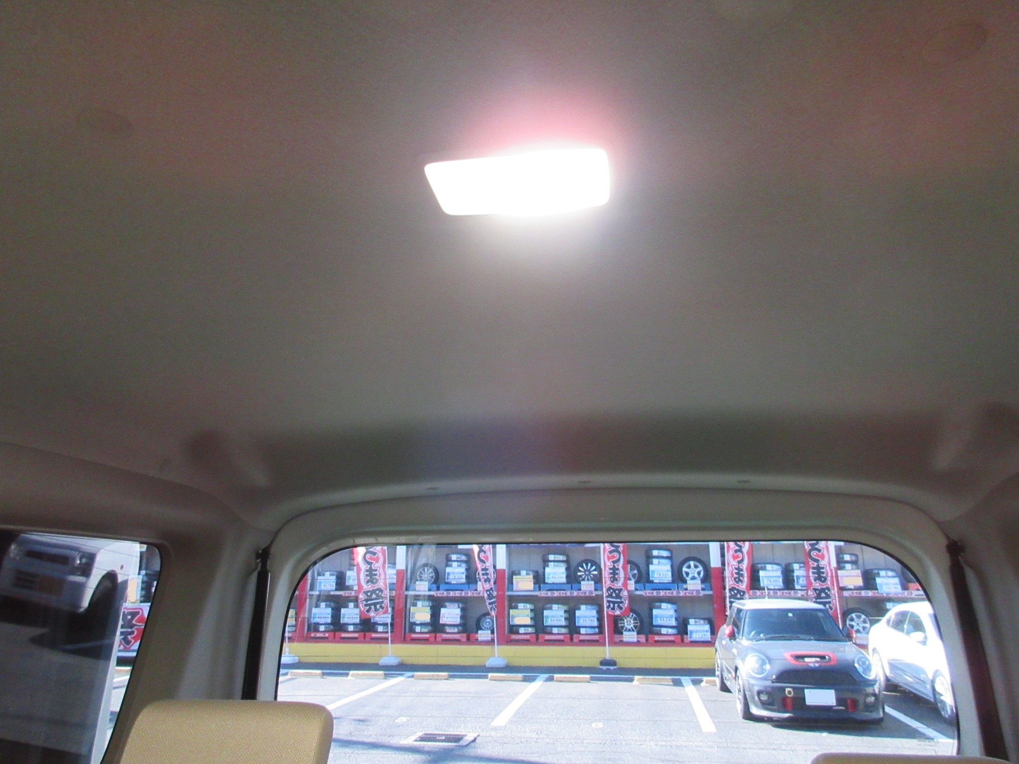 ちなみにこちらのエブリイワゴンは、昨日のスペーシアのようなラゲッジルーム専用のランプが無いんです。