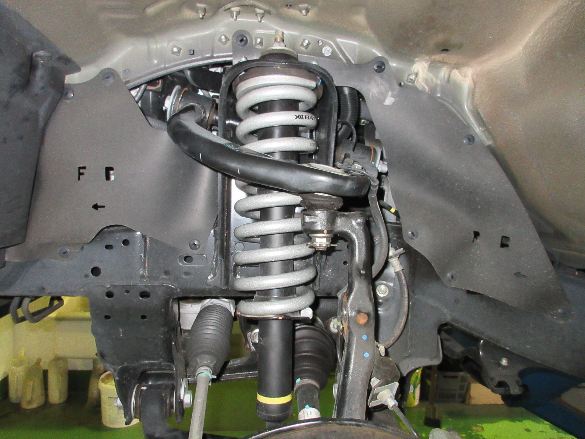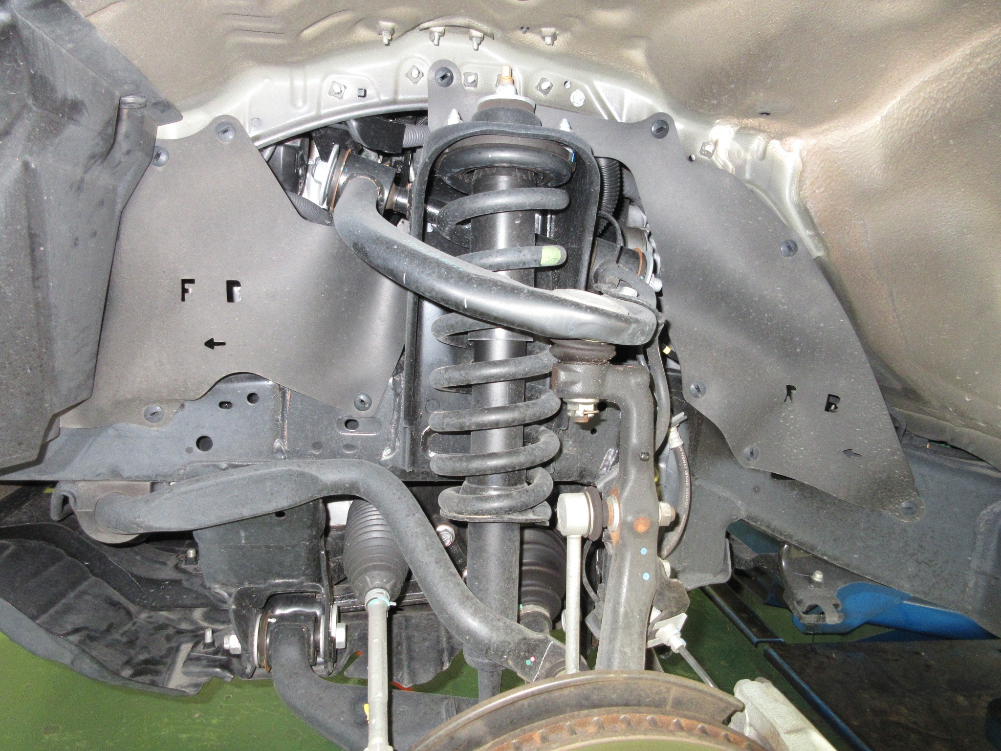 このバネを入れることで35〜40mmフロントの車高が上がる人気商品で、当店でも数多く取り付けさせていただいております。
