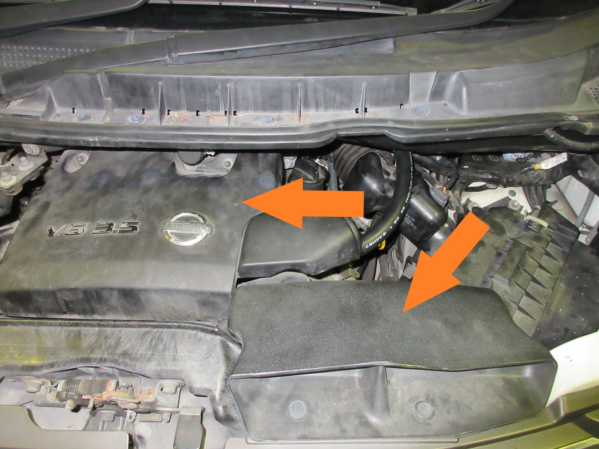 とりあえずエンジンの上のカバーと吸気ダクトを外します。