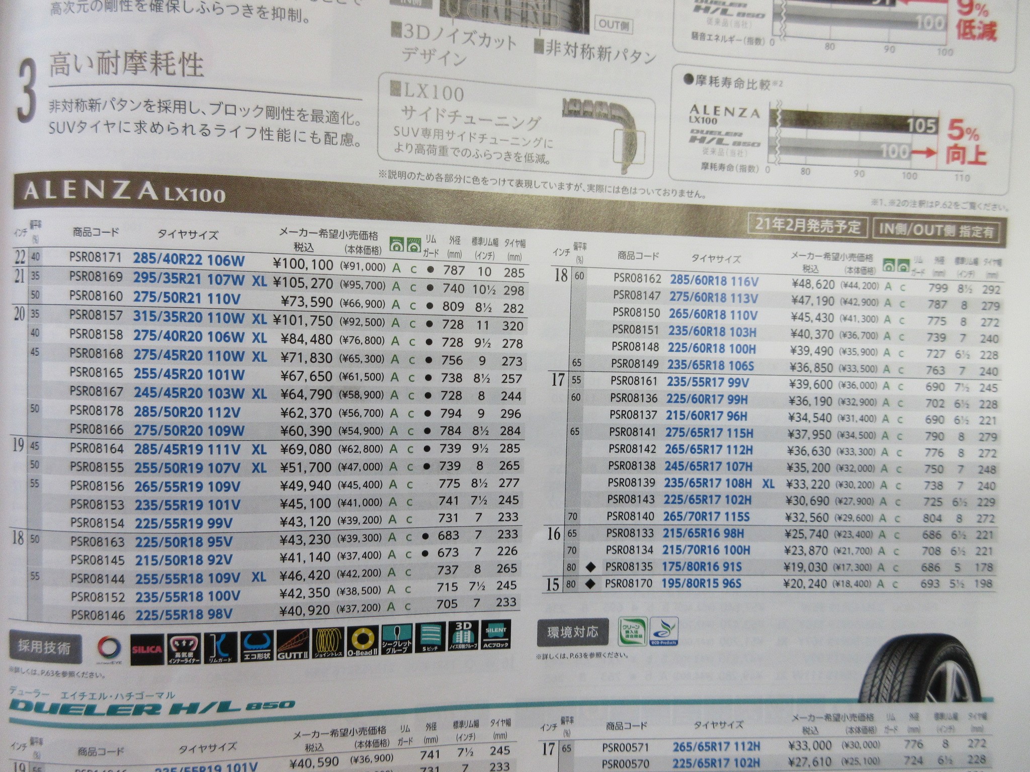 タイトルの通りBRIDGESTONEのSUV用タイヤ、DUELER H/L 850がモデルチェンジです。