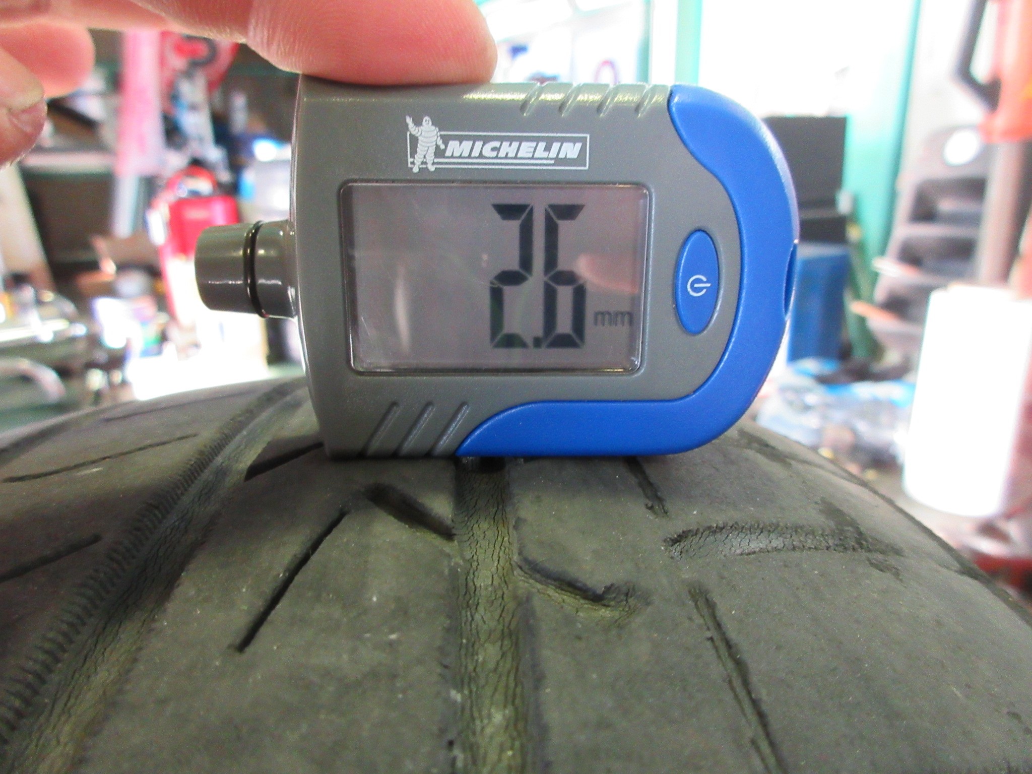 中央が内側/外側に比べ溝が残ってるので、この感じだと空気圧不足がこの症状の要因の一つですね。