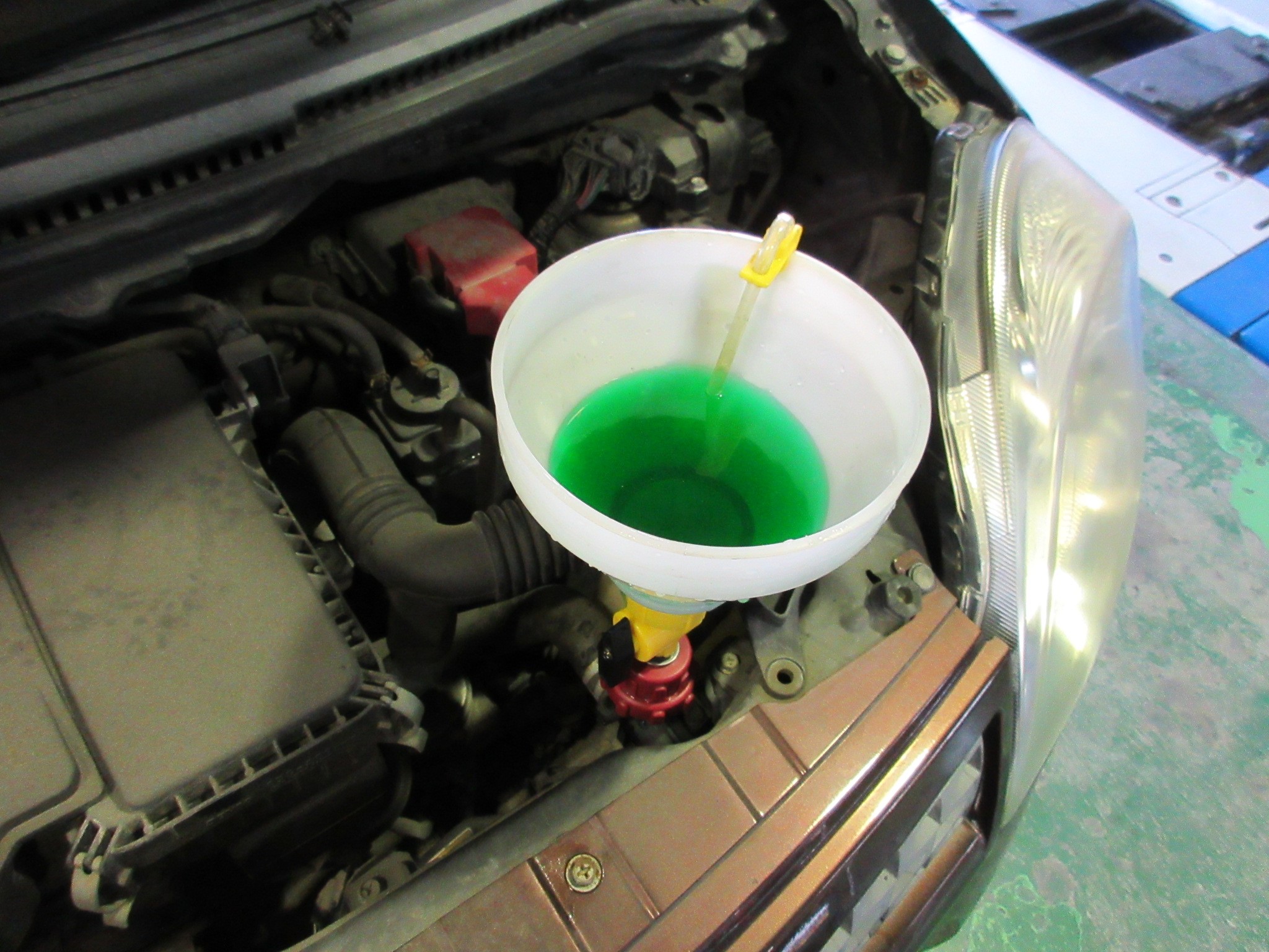 各部チェックが終わり、LLCも抜けたので新しいLLCを注入し、エア抜き作業です。