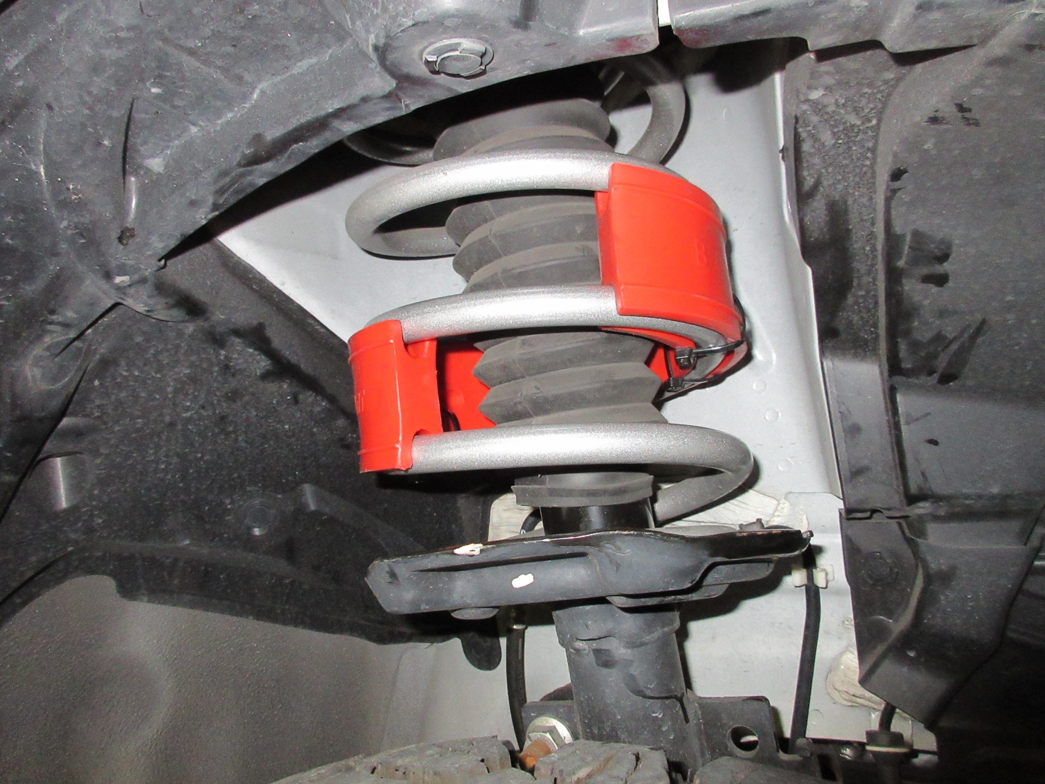 今回は車高を上げたいのでジャッキアップしてバネを伸ばした状態にして取り付けます。