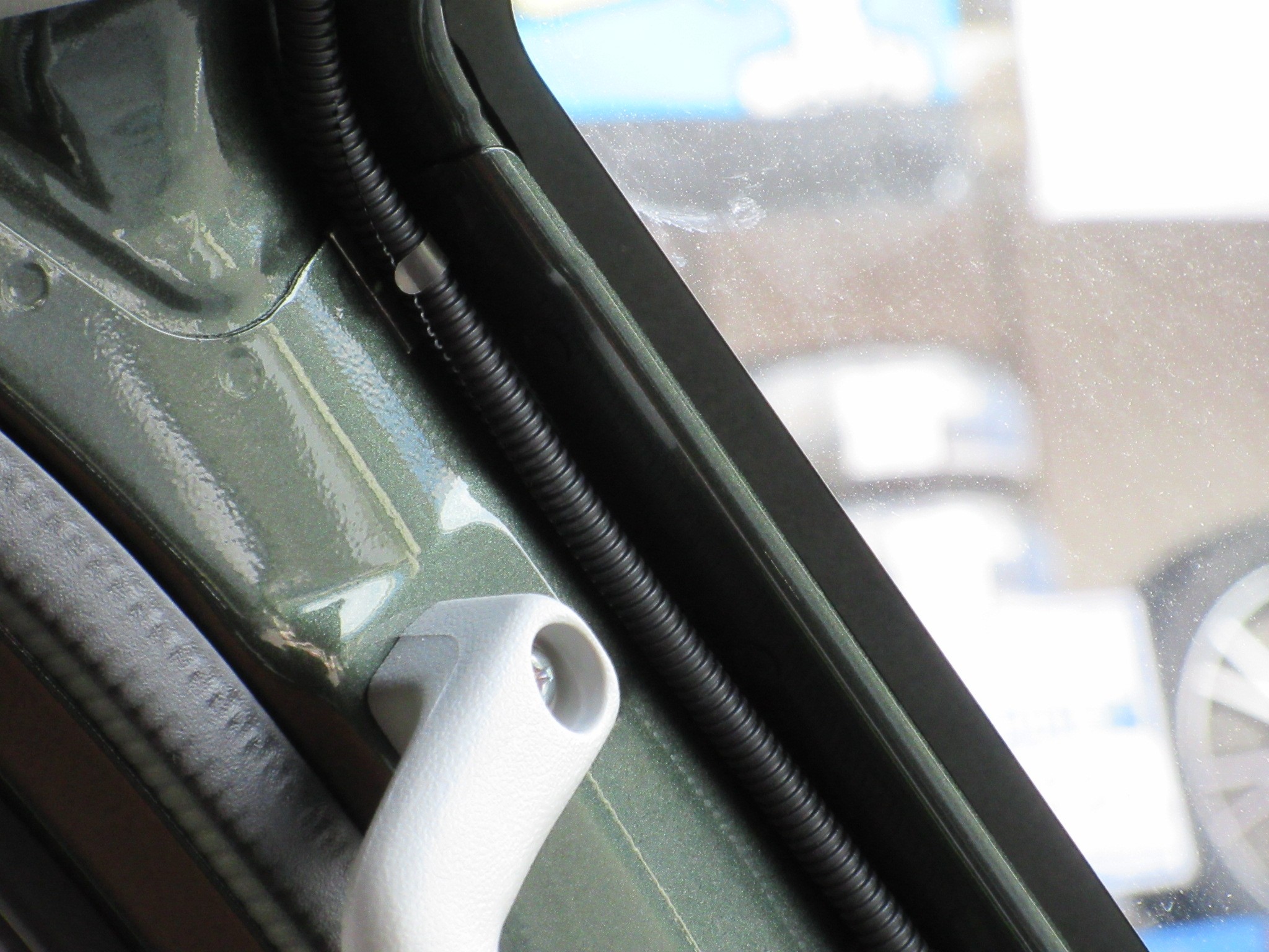 こちらのお車のAピラーにはカバーが付いておらず、鉄板むき出しなので隠せません。。。