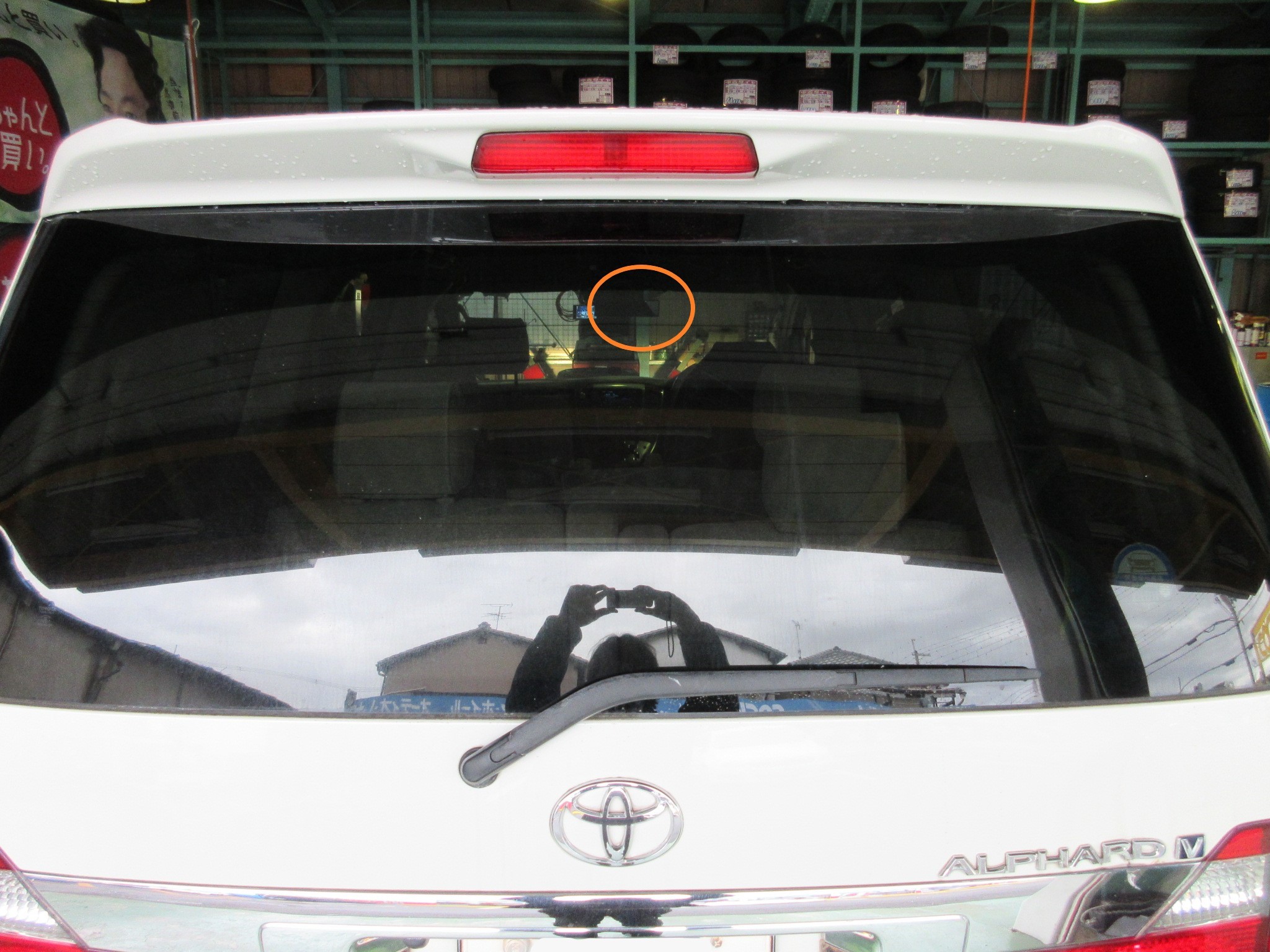 テールゲートを開けるとこの様に内側からガラスに貼り付けています。