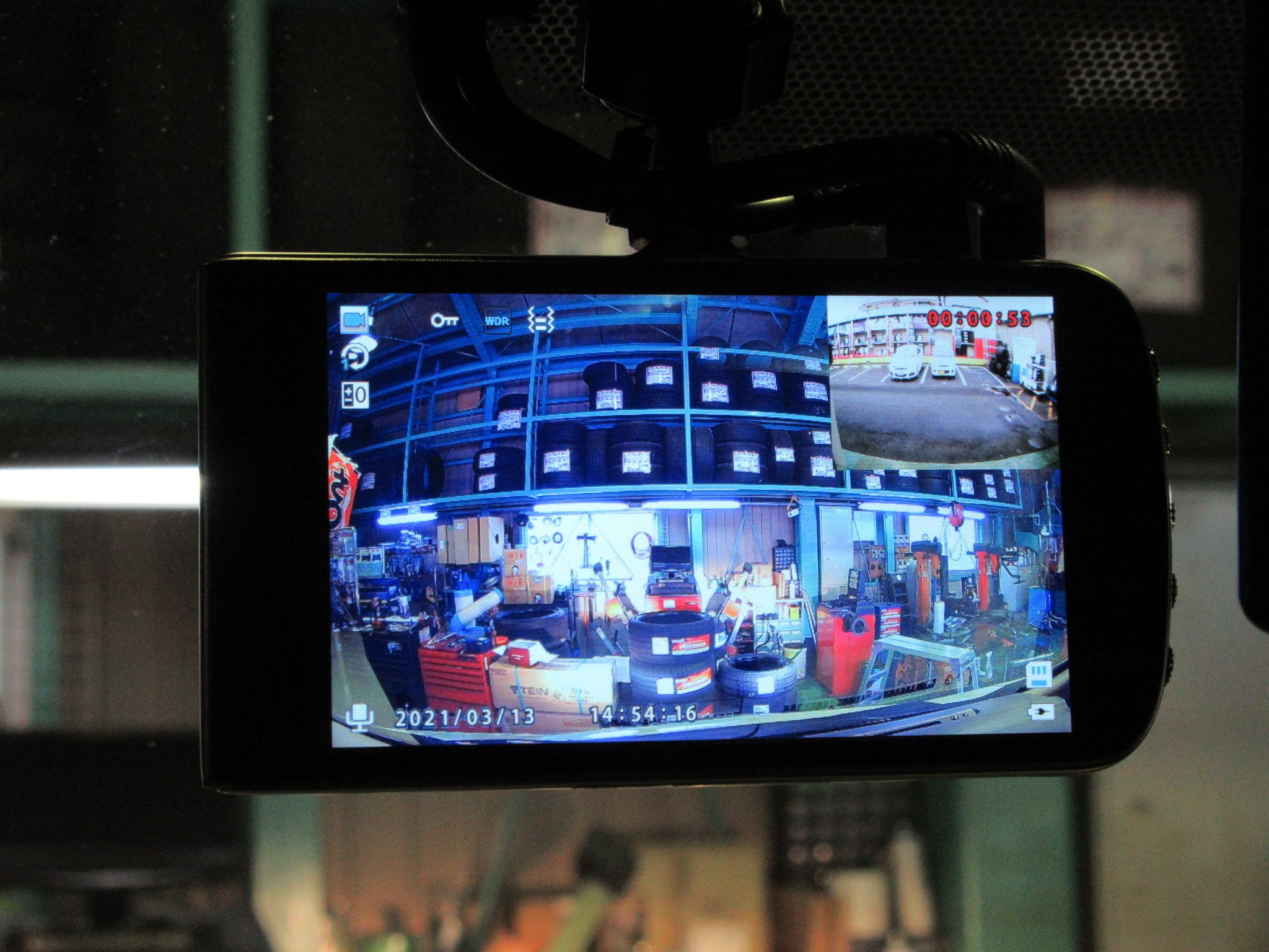 画面表示はフロント画像+リヤを小さく表示。