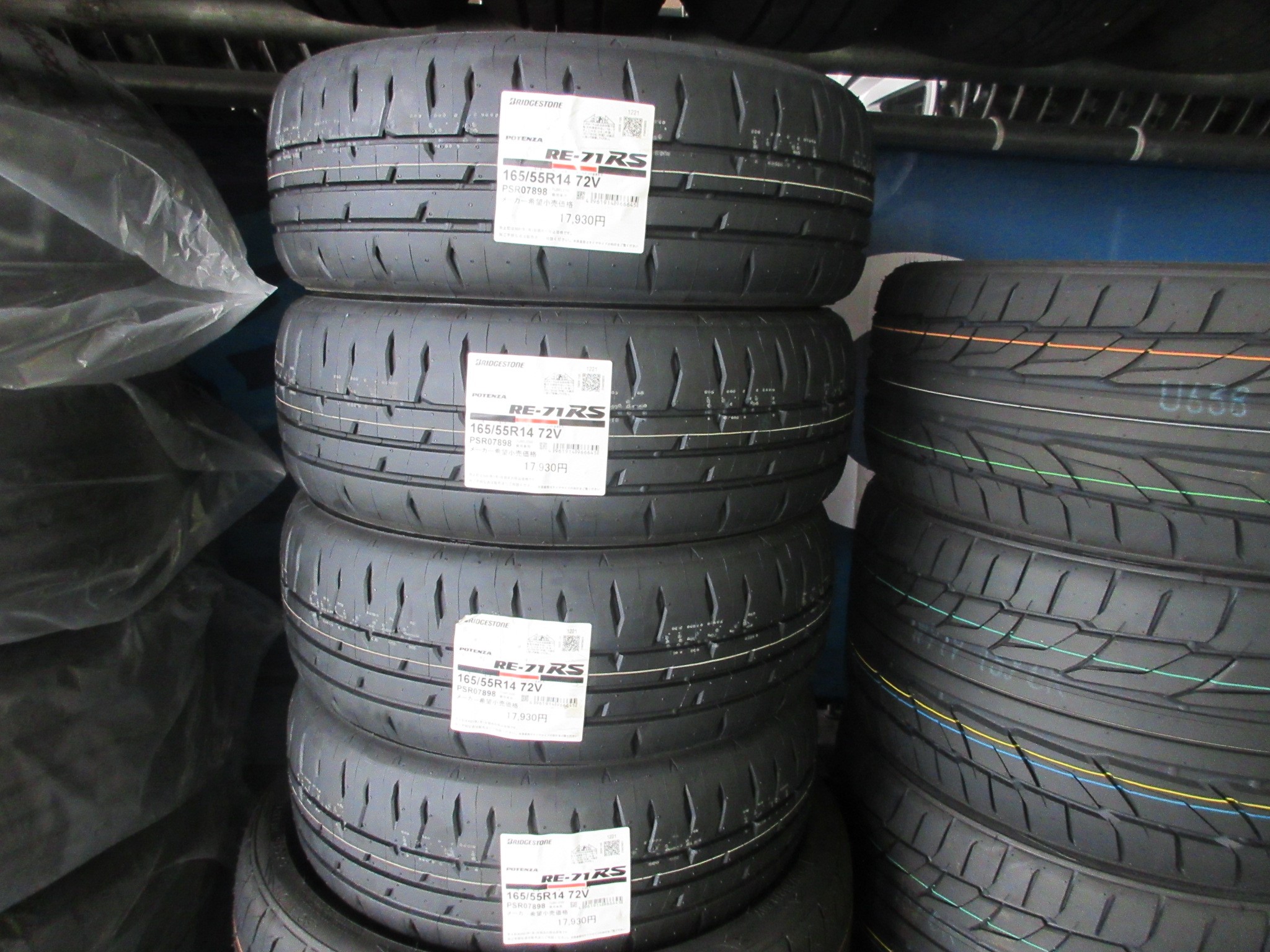 流石に155/65R13・155/65R14等のサイズは設定なしですが、165/55R14・165/50R15等の低扁平サイズなら、RE-71RS、Adrenalin RE004のサイズ設定があります。