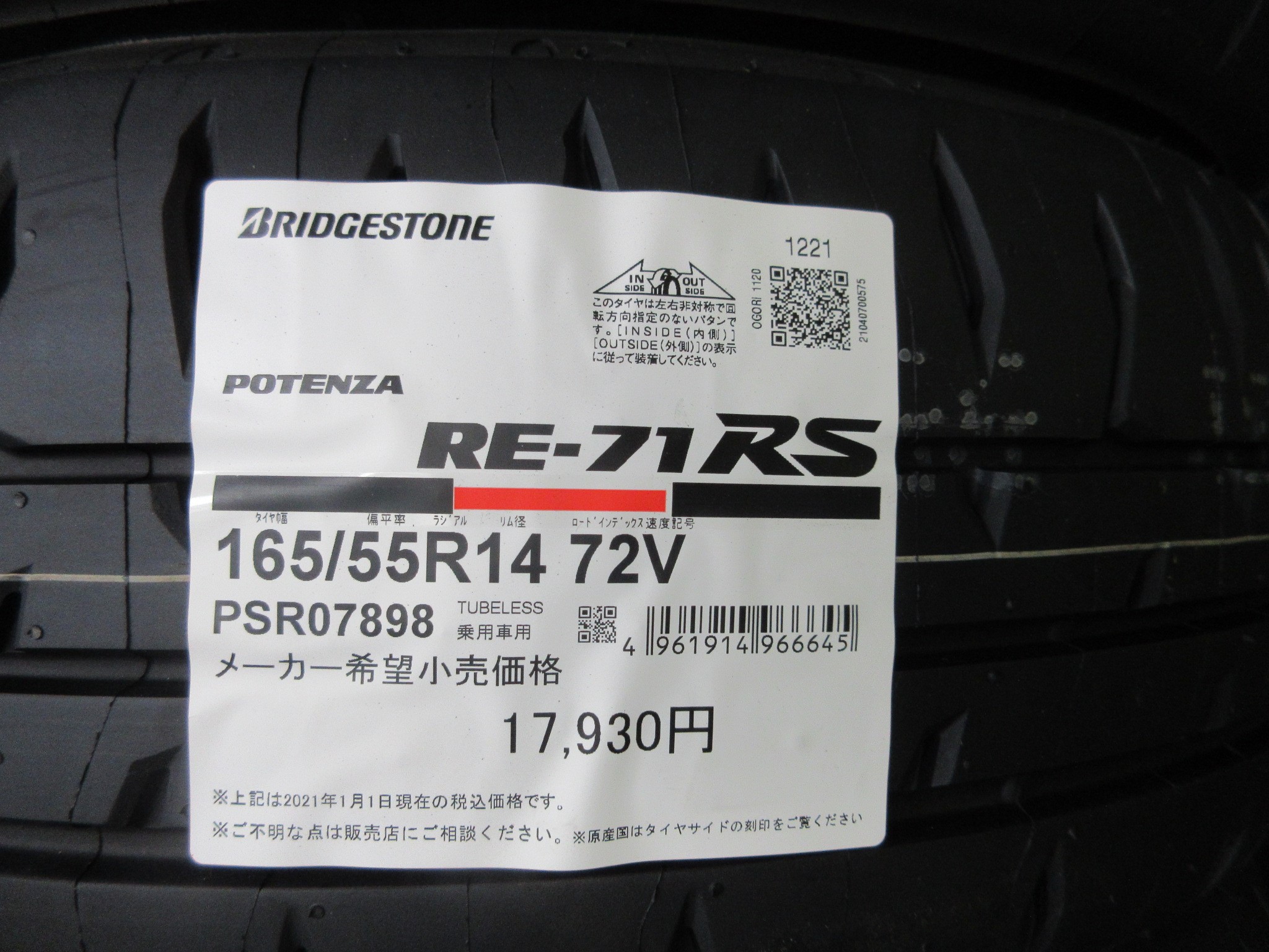 そんなPOTENZAですが、今回御注文頂いたのはどちらかと言えばサーキットユースの、リアルスポーツPOTENZAのRE-71RSです。