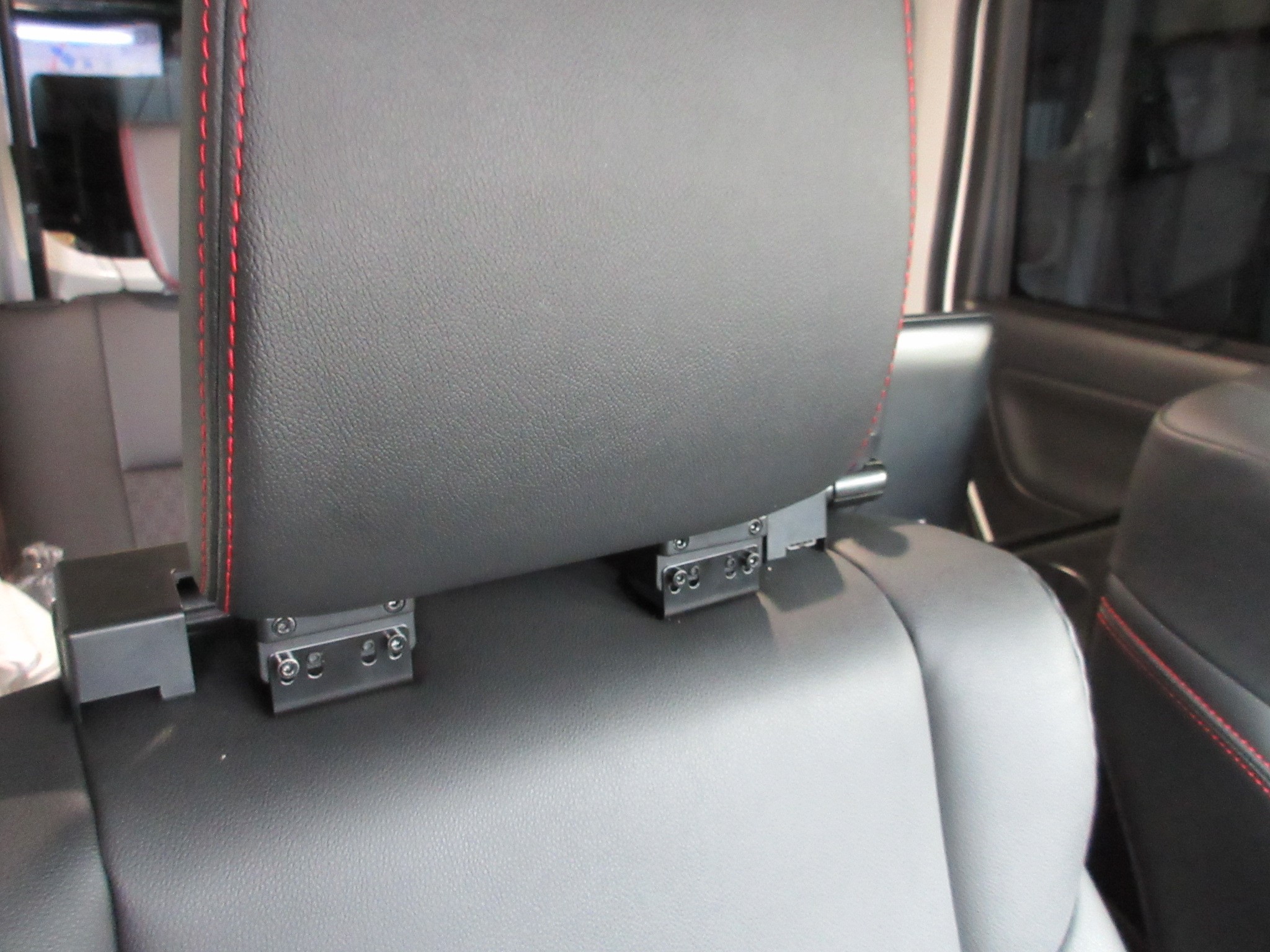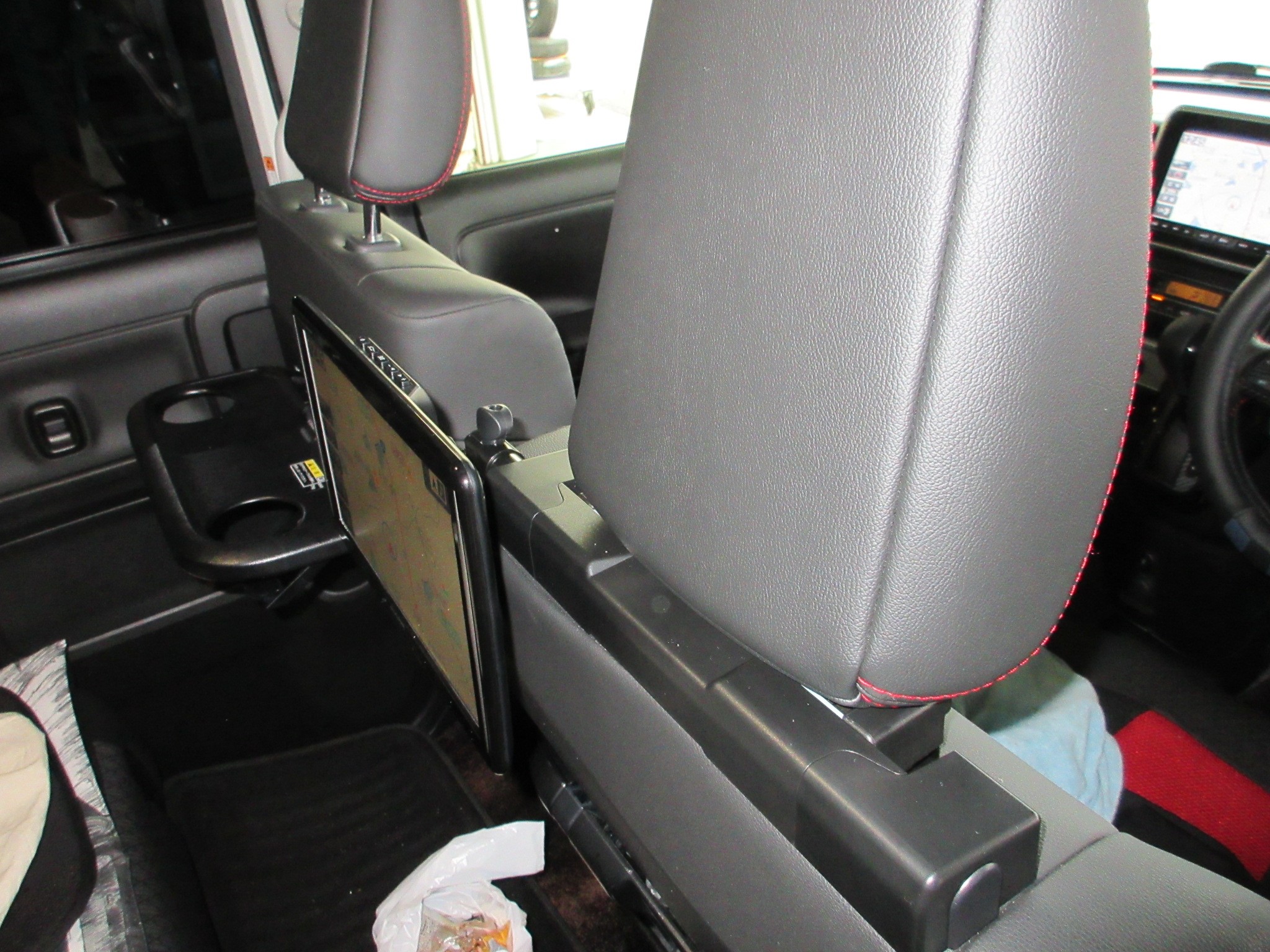 モニター位置はヘッドレスト取付ステーのアームを伸縮できるので、お好きな位置に合わせられますよ。