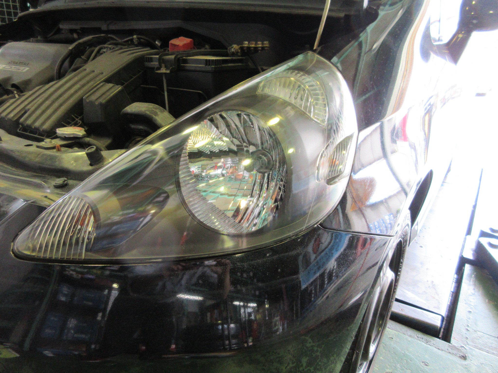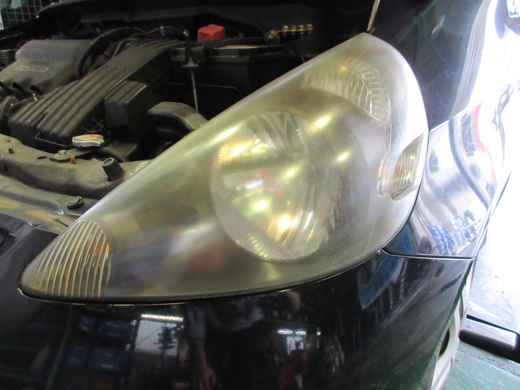 昔のお車はヘッドライトはガラス製だったので、劣化して黄ばんだり曇ったりという事は無かったと思いますが、現在公道で見掛けるお車の殆どは樹脂製のヘッドライトレンズです。
