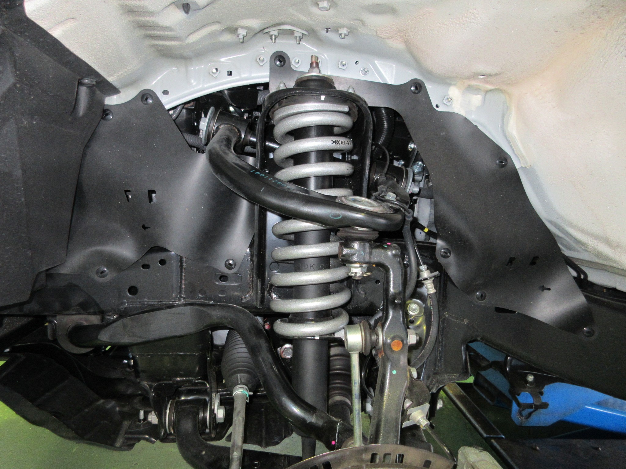 方法は至ってシンプルで、純正ショックアブソーバーやアッパーマウント等は純正を加工せずにそのまま使い、純正のスプリングの代わりにリフトアップスプリングに交換という方法です。