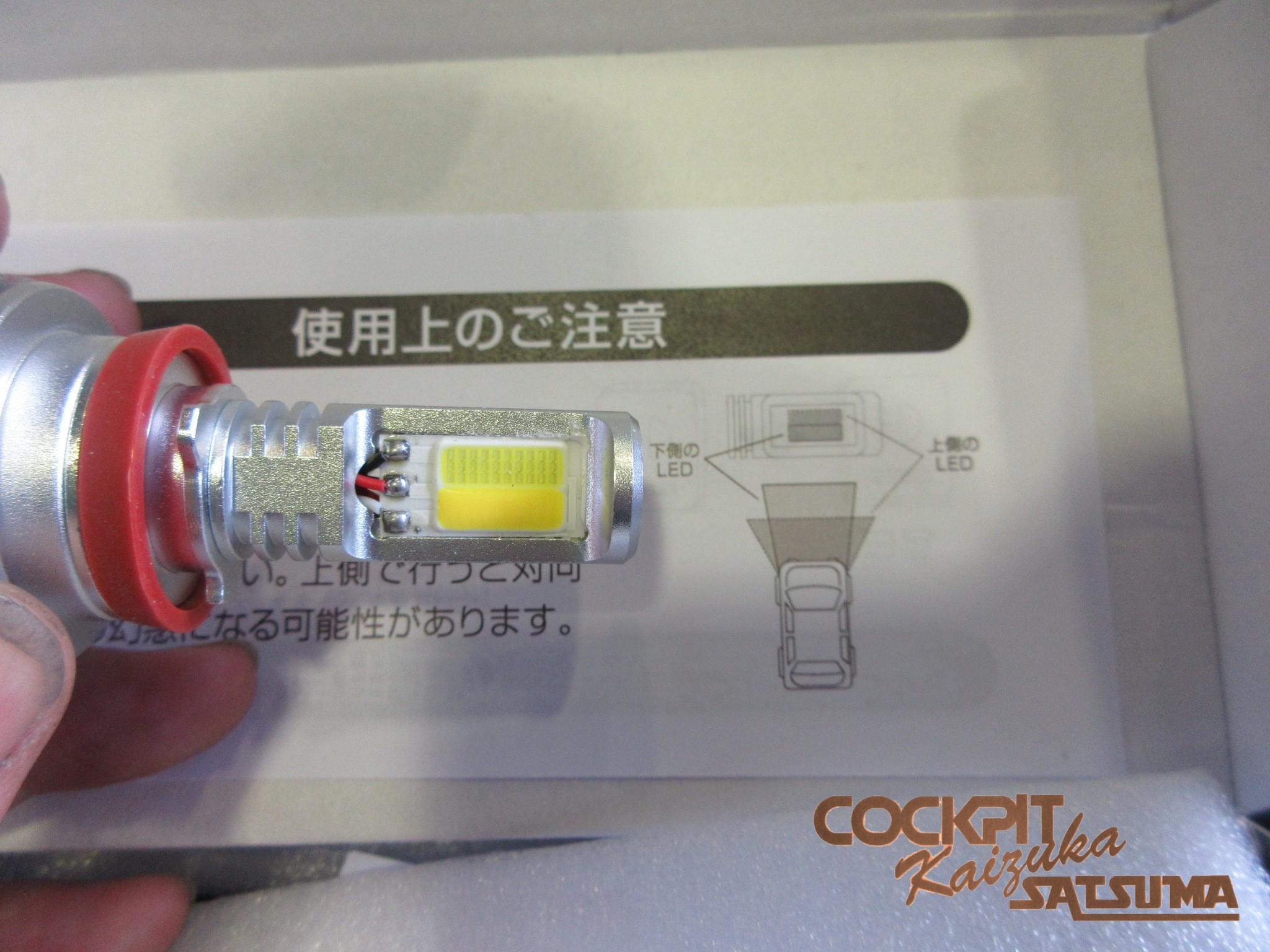 上側のLEDは手前を幅広く照射し