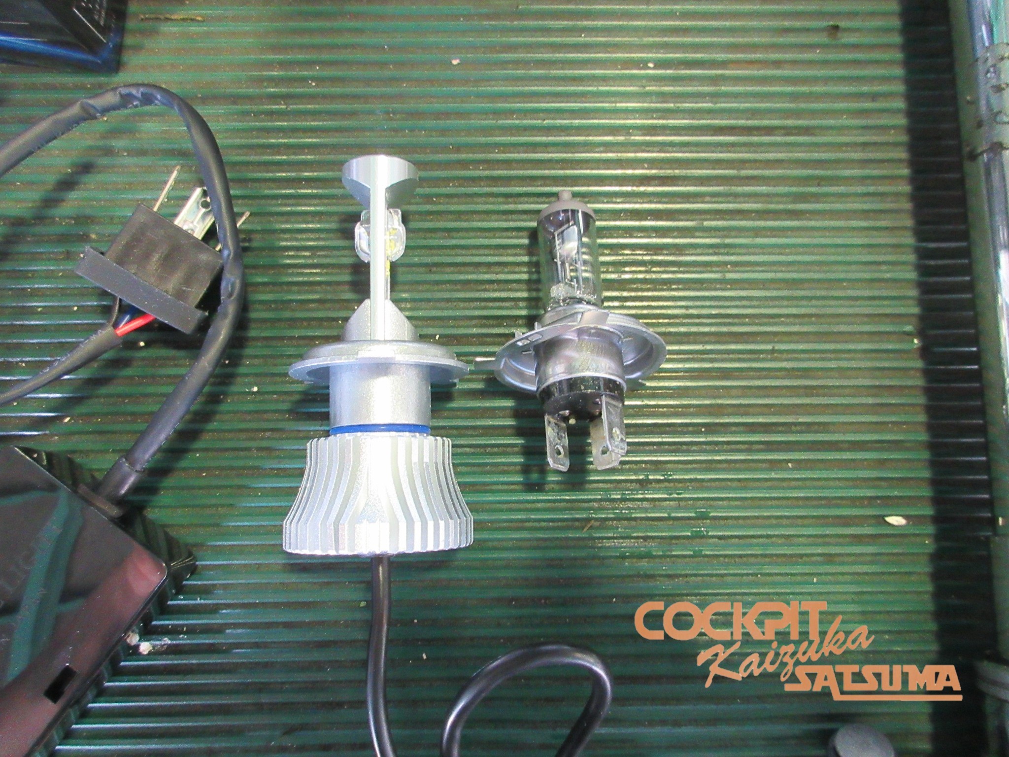 取り外したハロゲンバルブと並べるとこんな感じです。