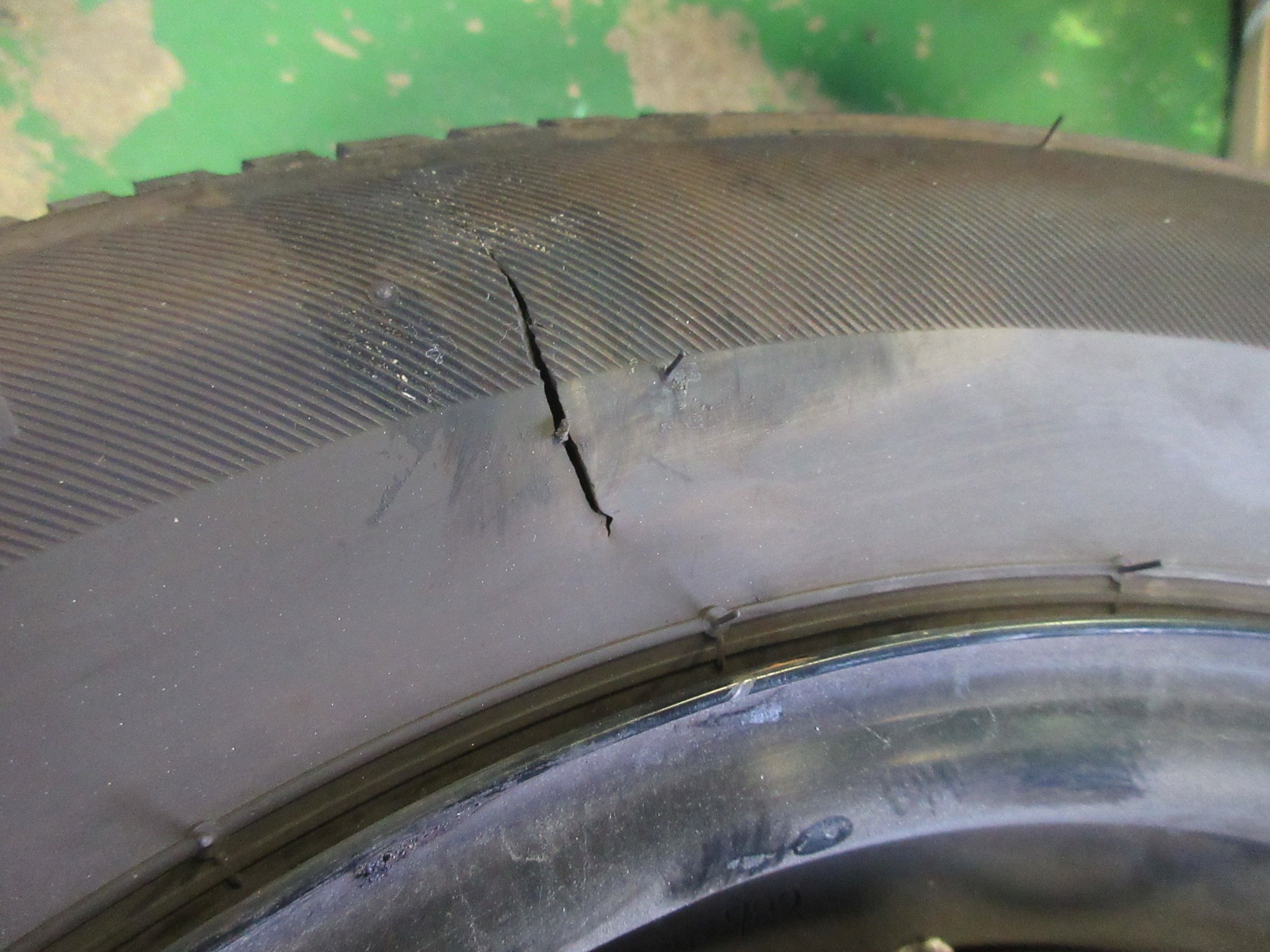タイヤの側面は脆く、修理は出来ません。