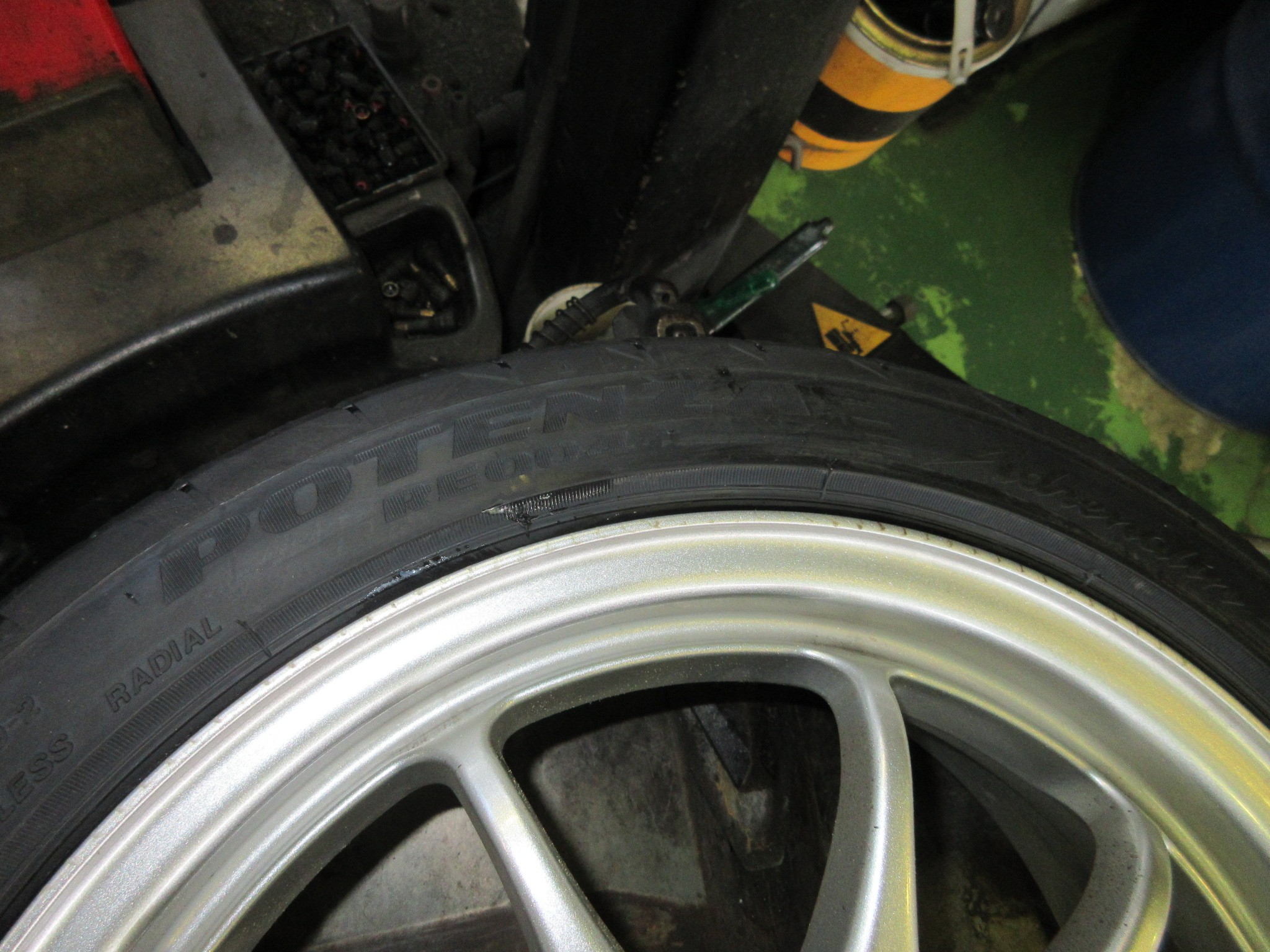 サイズ的にNEXTRYかRE004かRE-71RSの三択になり、新車装着時相当品のエコタイヤが選べなくなってましたので、PlayzからPOTENZAへとキャラクターチェンジとなりました。