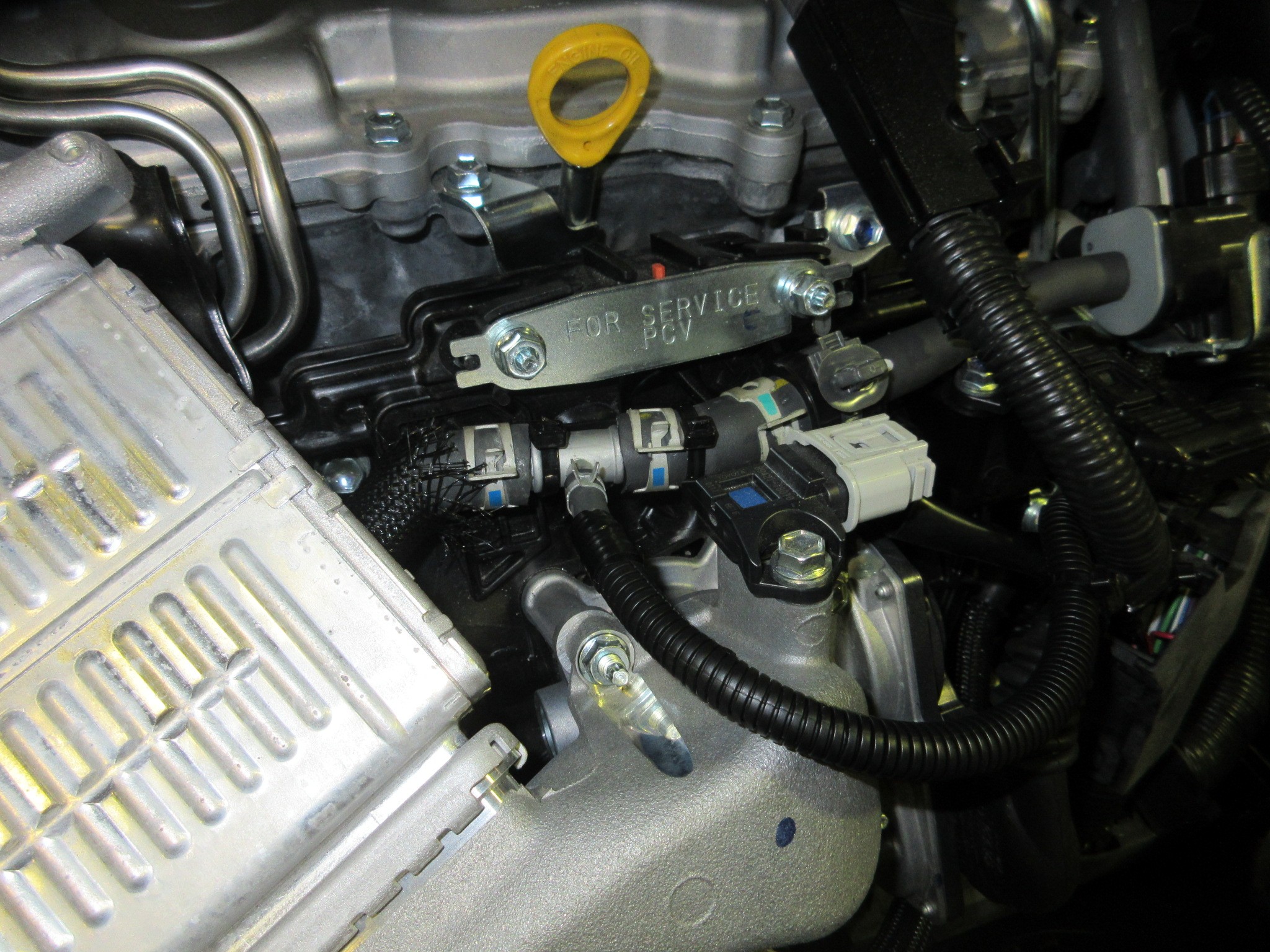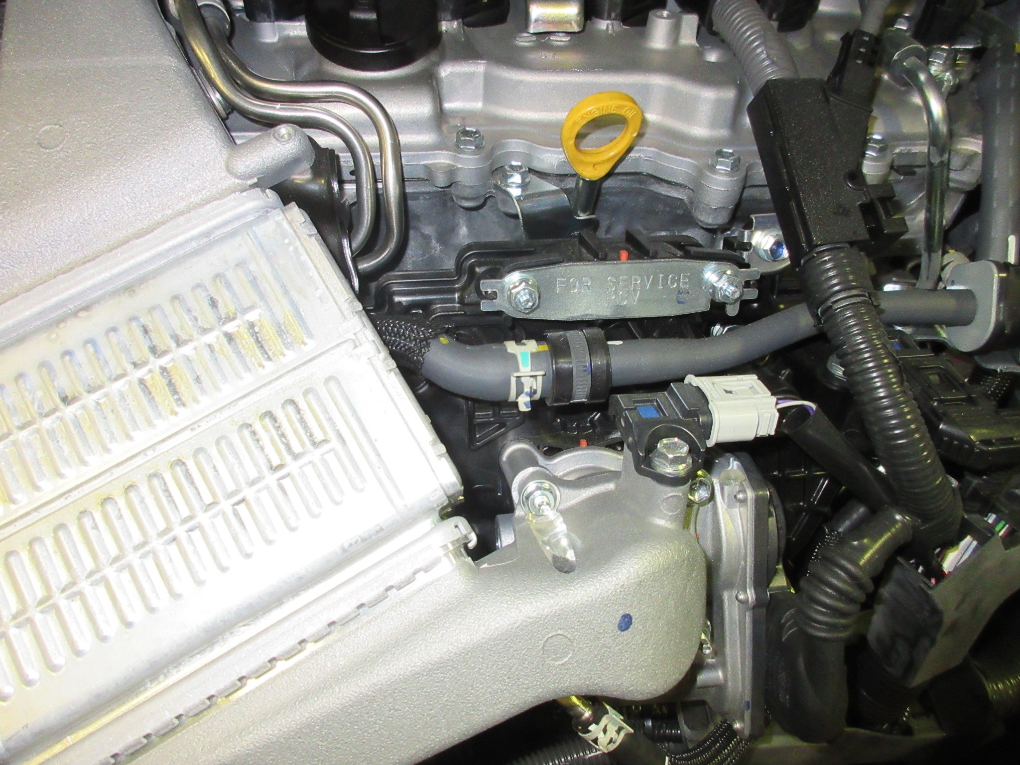 本当はロスを軽減する為にもっとホースを短くセットしたい所ですが、助手席側のエンジンメインハーネスを室内に引き込んでる場所しか室内に配線を引き込めなさそうなので、この位置に設置となりました。