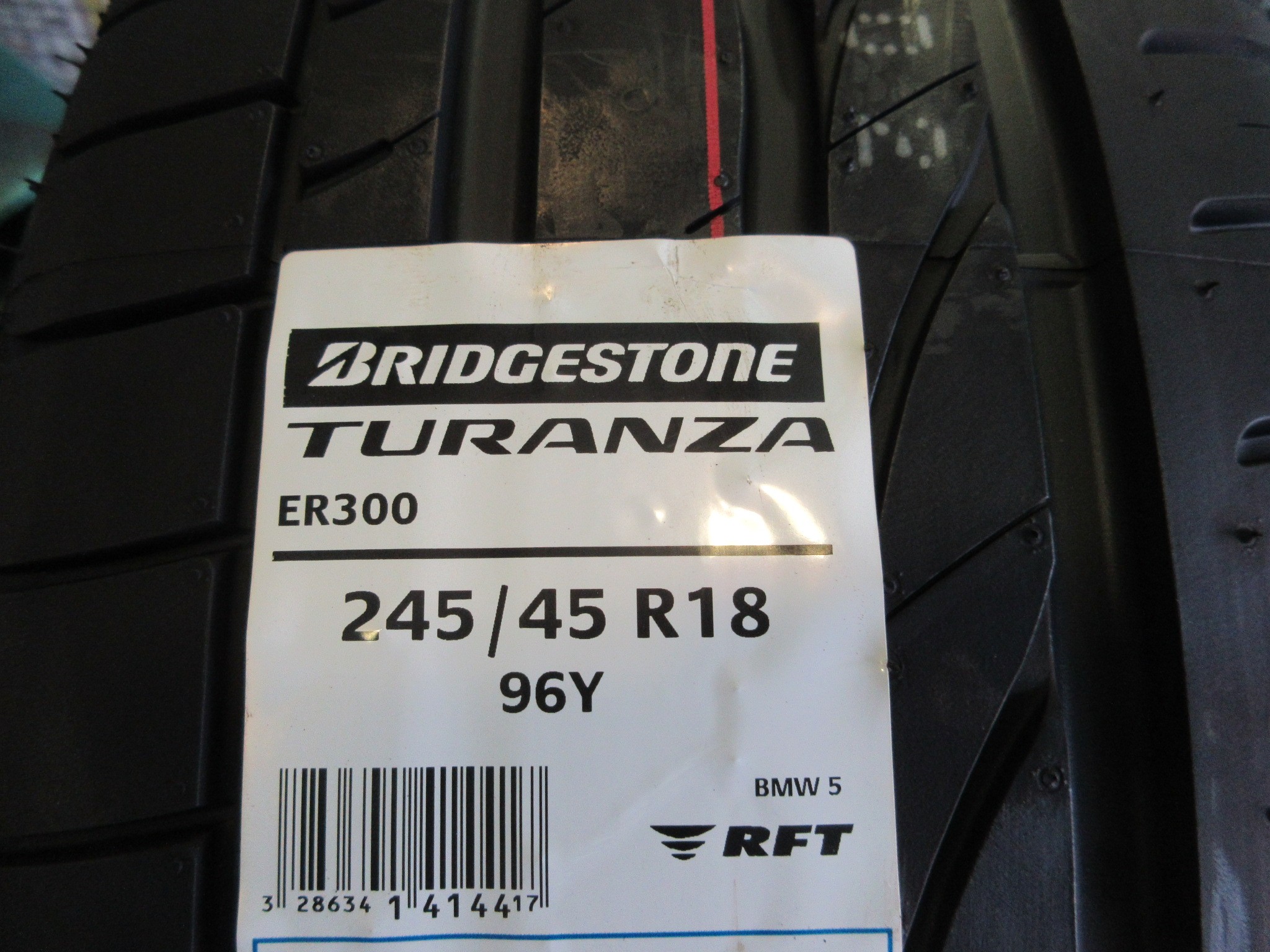 ランフラットタイヤの表記はメーカーにより違いがありますが、BRIDGESTONEではRFTという表記です。