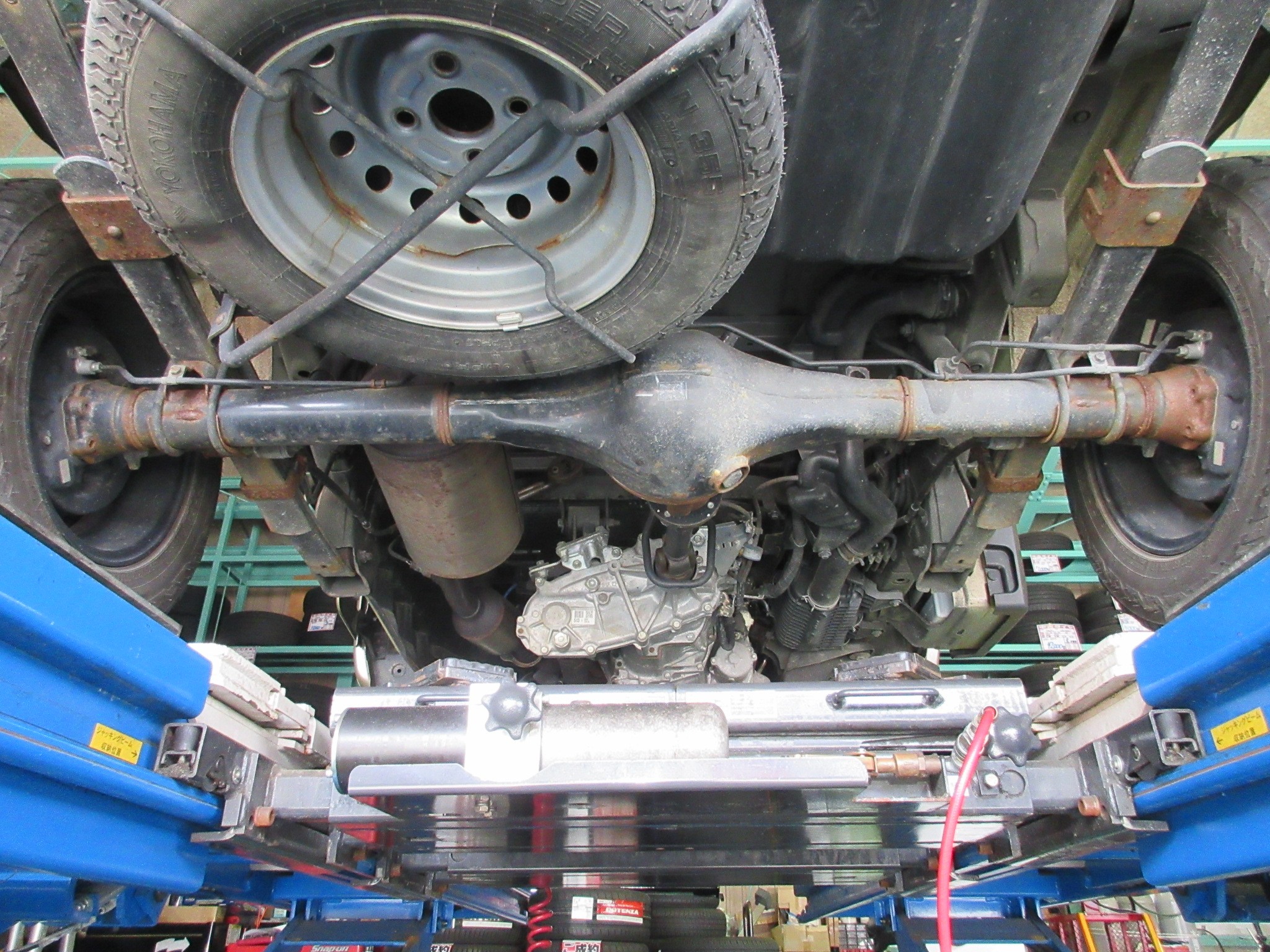 画像ではリヤの下廻りしかありませんが、当然フロントやセンターのクロスメンバーやロアアーム等も同様に施工していますよ。