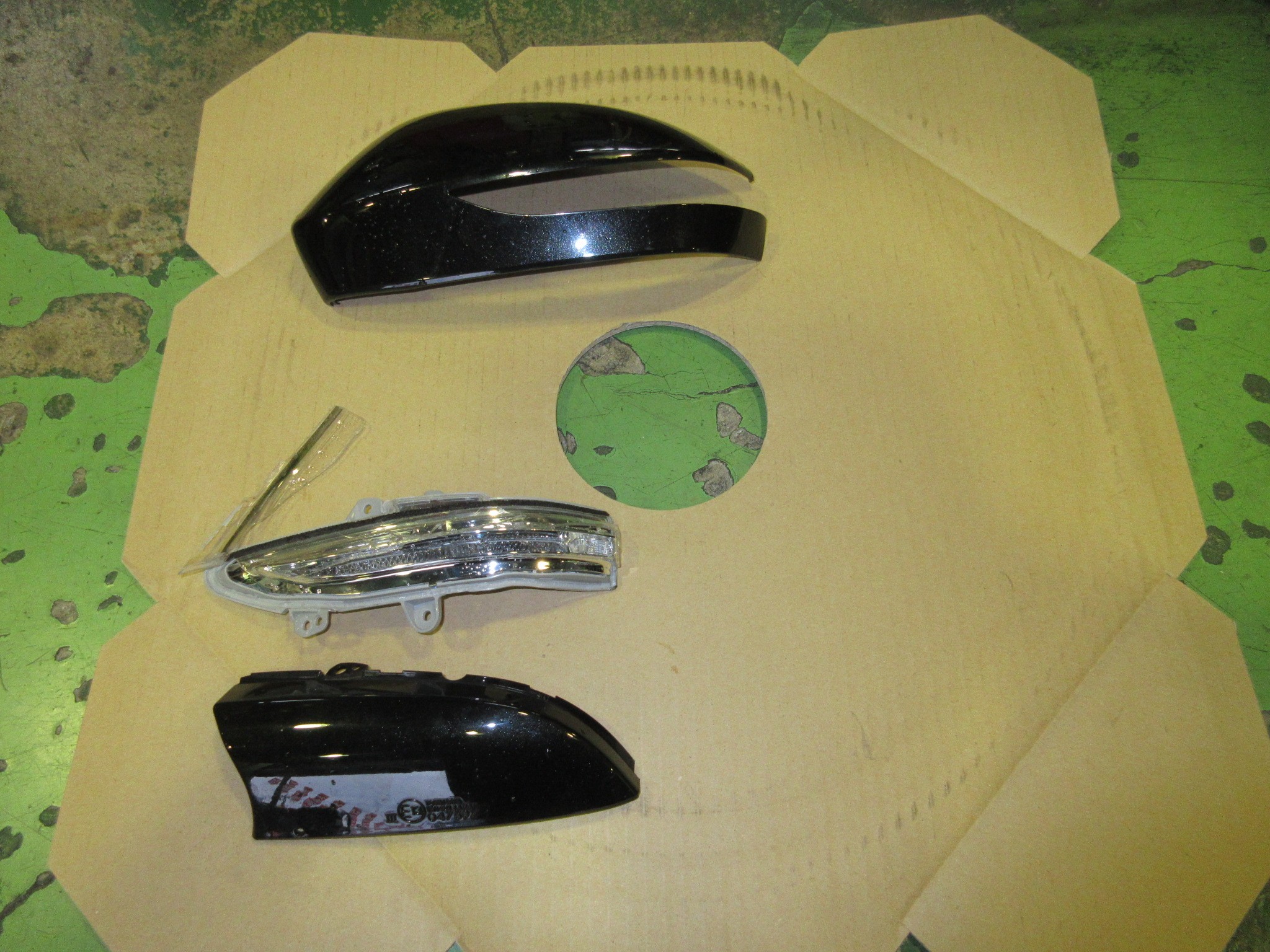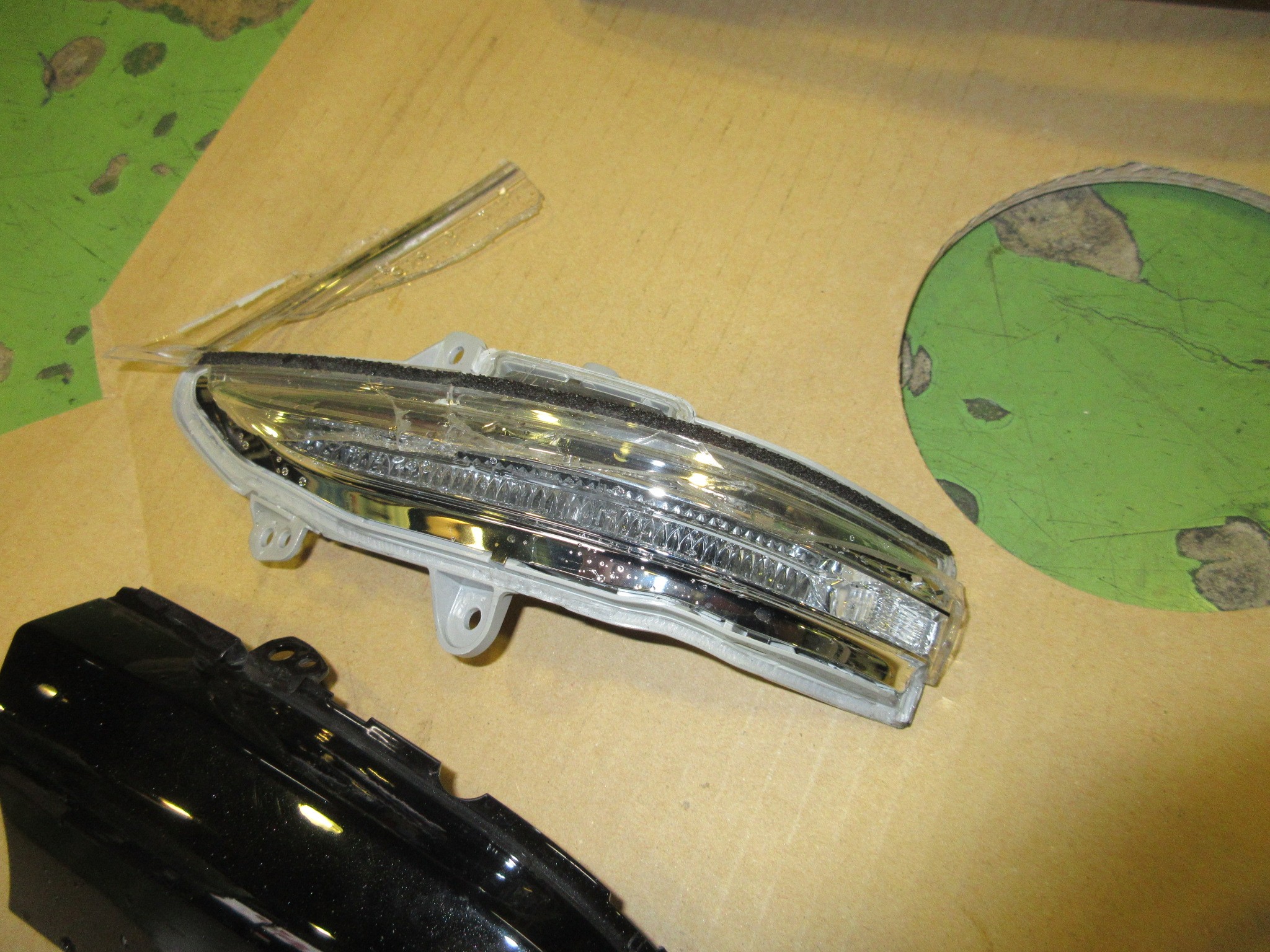 分解するとドアミラーカバーの中にも、レンズの破片が落ちていましたので、これも全て回収します。