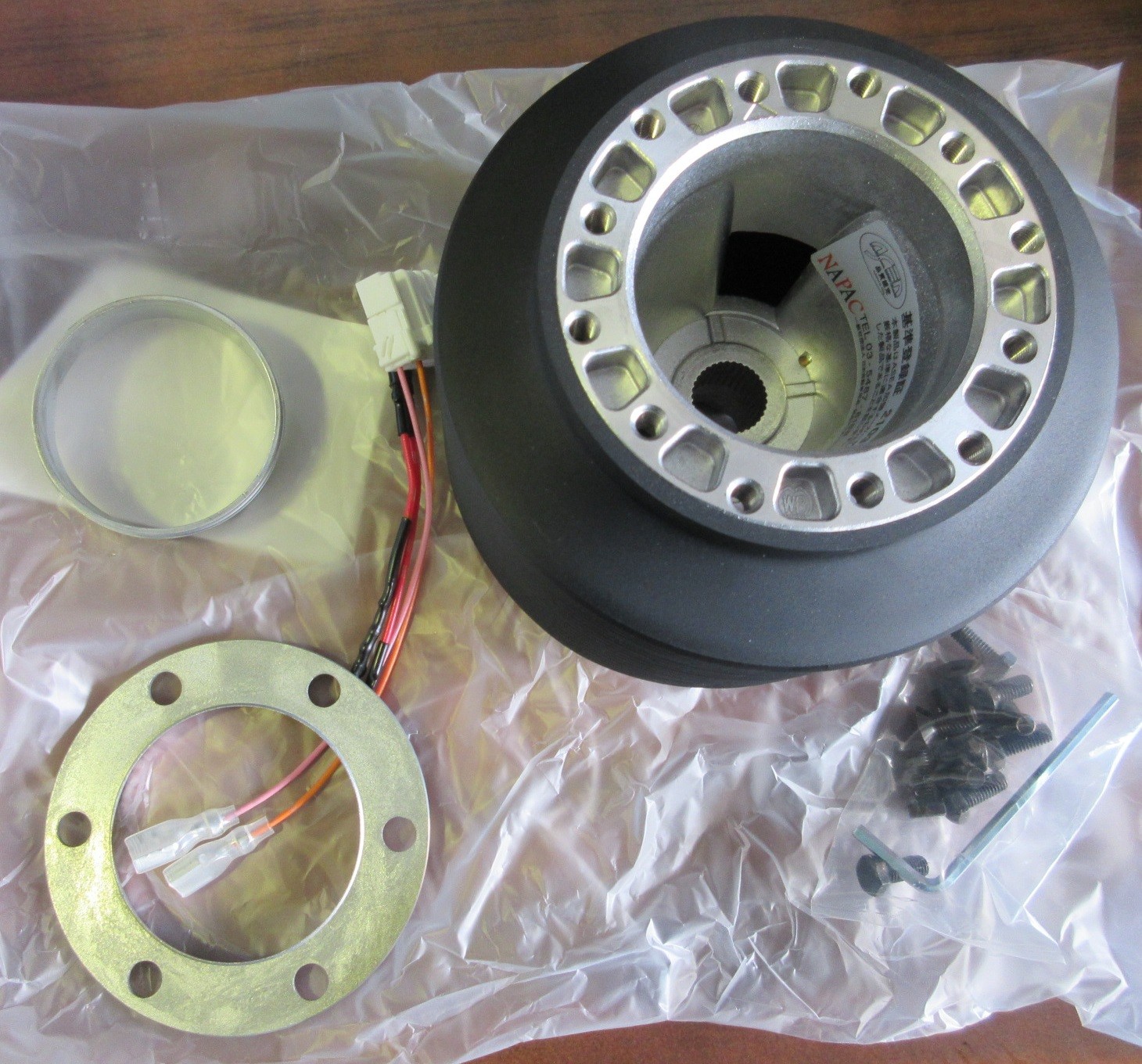 NARDI/MOMO/OMPタイプの社外スポーツステアリングを装着する為のアダプター。