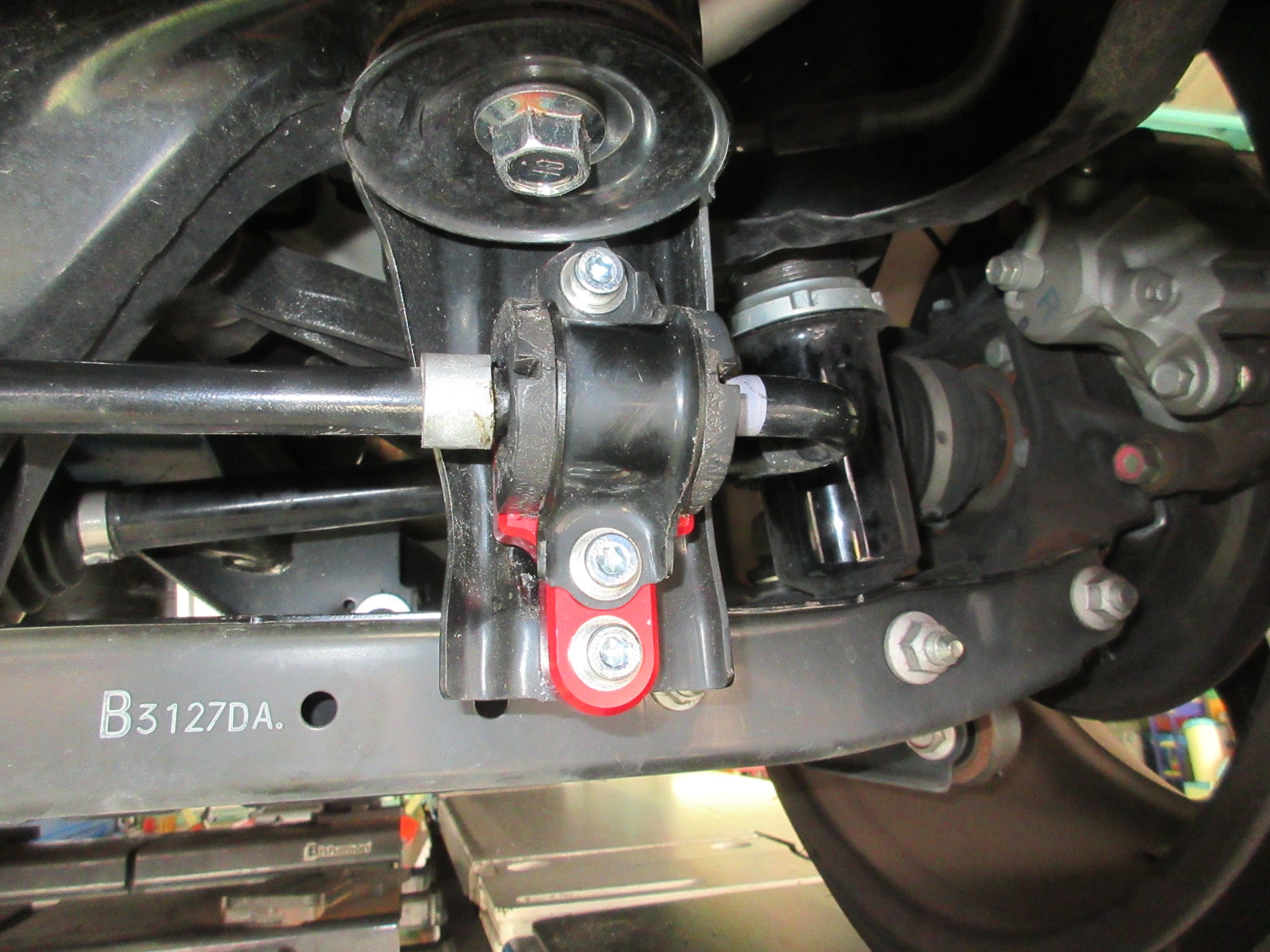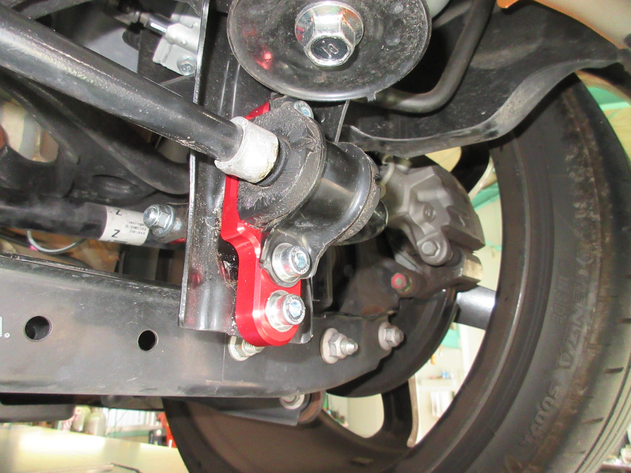 そうなるとスタビライザーの稼働効率が低下してしまいますが、このアジャストプレートを使用すると、スタビライザー取付位置が上方にオフセットされ、スタビライザー取り付け角度が補正されます。